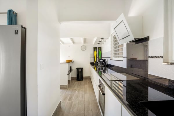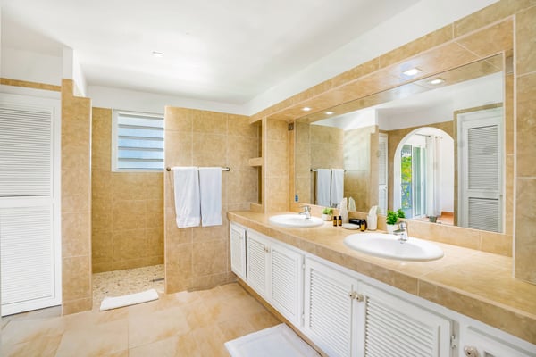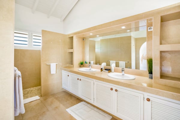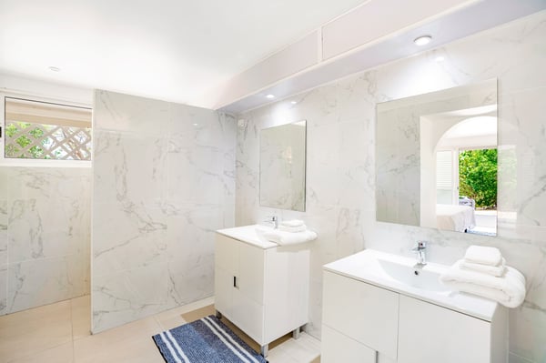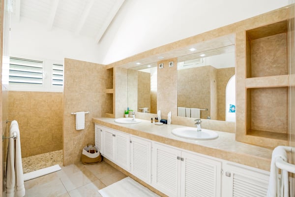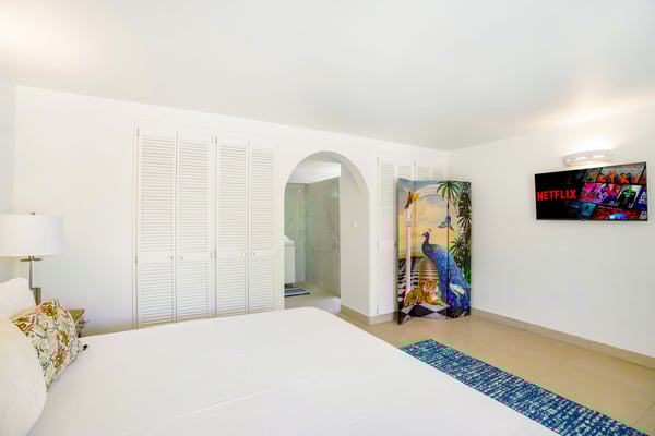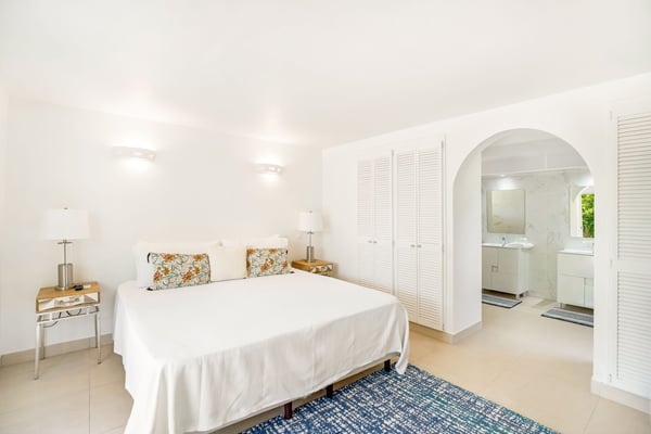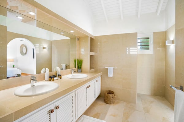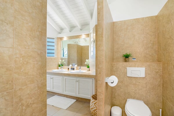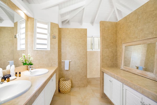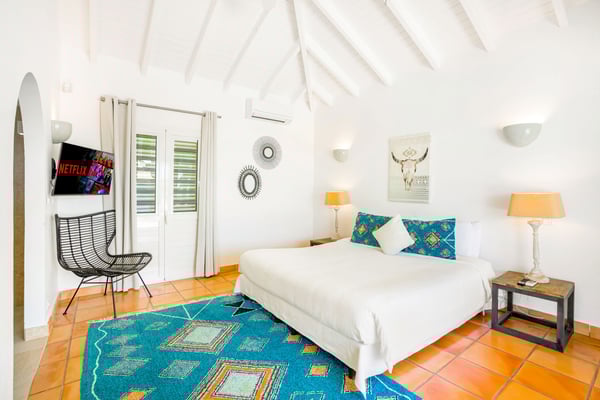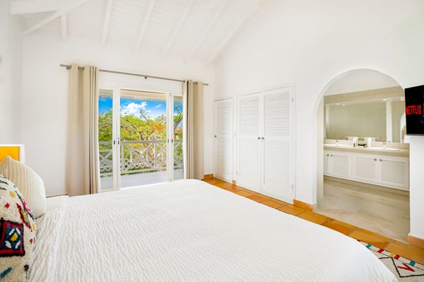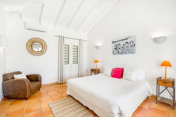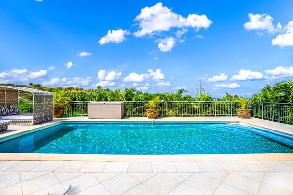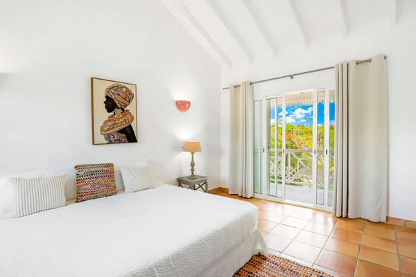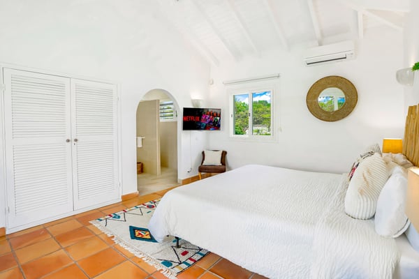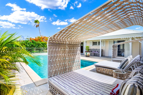 Madras is a luxurious Caribbean villa situated in Terre-Basses, a private gated community area in French St Martin. As you enter the villa and out to the terrace, the richly variegated scenery expands into a panoramic view filled with a profusion of colour and texture. The blues of the Caribbean and tropical sky are accented by white clouds. Below are the elegant villas and gardens of Terres Basses. At dusk, brilliant sunsets create colourful backdrops for evening entertainment. This newly renovated four-bedroom property is located in the heart of the exclusive Terres Basses area and within a few minutes walk of the beautiful beach of Plum Bay. All the bedrooms have a king bed, a ceiling fan, air conditioning, and a large en-suite bathroom. The living area is air-conditioned and has U.S. satellite Television. Outside the great room are spacious exterior areas for relaxing, dining al fresco, and swimming. Inspired by the view’s shades of blue, the stunning custom pool. Surrounding the pool are plentiful spaces to lounge, relax, and enjoy the view and sun. The Lowlands are the location of some spectacular beaches: Baie Longue and Baie aux Prunes (Long Beach and Plum Beach) are secluded, have public parking, but no services. Neither beach is ever crowded. Baie Rouge is set amongst some dramatic red cliffs. The elegant homes in Terres Basses are sitting on generous lots, most of them with gorgeous views of either the Lagoon or the ocean, or both. By car it's about 10 minutes away from Marigot, and 15 minutes away from the Airport.