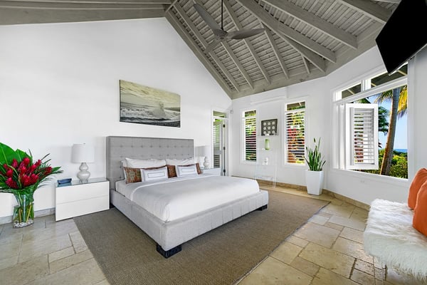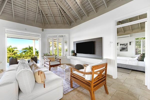 The Tryall Club requires all villa and condo guests to become members during their stay via a Temporary Membership Fee ($) (plus a 15% service charge). Children between the ages of 13 and 15 pay at a discounted rate (plus a 15% service charge). Guests can also pay per day, for guests ages 16 and older, who stay for one to four days. This can be either prepaid or upon arrival at the Club. For children 12 years of age and younger, our Temporary Memberships are complimentary. Please contact a Villa Specialist for exact pricing! There are villas, and there’s Harmony Hill. A breathtaking retreat offering one of the most spectacular locations at Tryall. Perched 350 feet above sea level, Harmony Hill spans seven acres of lush gardens and organic farmland designed to deliver the ultimate luxury experience. With an elite team of 11 dedicated to world-class hospitality, it’s no wonder Harmony Hill has an enviable guest return rate. Every room in the villa offers unparalleled ocean views, with an infinity pool terrace that seamlessly blends into the horizon. The sophisticated sitting room, wet bar, and formal dining space for 16 create the perfect backdrop for memorable events, while the open-concept main pavilion boasts soaring ceilings that call you to the sea. A media room with a 65-inch surround-sound TV provides a cozy escape. At the same time, the covered veranda with plush seating and a dining area invites guests to linger over meals with an incredible ocean backdrop. The poolside bar and fire pit lounge are guest favorites, offering panoramic views stretching out to sea and into the lush valley. For wellness enthusiasts, the private ocean-facing gym is fully equipped with top-tier machines. Harmony Hill offers seven opulent, air-conditioned bedrooms with spa-like en suite baths and views of the ocean. The entire property is furnished with Smart TVs, surround sound, and Wi-Fi. The villa’s elegant atmosphere is enhanced by its carefully selected art collection, which makes each visit feel fresh, inspiring, and unique.