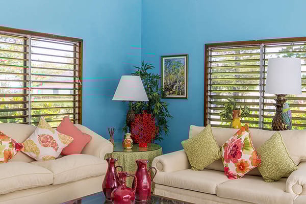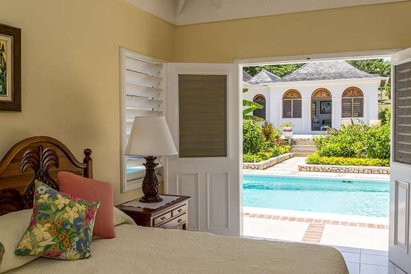 The Tryall Club requires all villa and condo guests to become members during their stay via a Temporary Membership Fee ($) (plus a 15% service charge). Children between the ages of 13 and 15 pay at a discounted rate (plus a 15% service charge). Guests can also pay per day, for guests ages 16 and older, who stay for one to four days. This can be either prepaid or upon arrival at the Club. For children 12 years of age and younger, our Temporary Memberships are complimentary. Please contact a Villa Specialist for exact pricing! Retreat Villa is a true ocean-view escape, perfectly positioned along the 18th fairway, just steps from Tryall Club’s private beach. Featuring expansive lawns, towering Royal Palms, and lush fruit trees, it’s an idyllic setting, especially for families with children. Designed in classic Jamaican style, the villa features an inner courtyard, a grand entry colonnade, and vaulted ceilings. Floor-to-ceiling mahogany louvered windows invite in the cool Caribbean breeze, while the spacious lawns offer plenty of room for kids to play. The villa boasts five beautifully appointed bedrooms, all with air conditioning, ceiling fans, and en suite bathrooms. The main house hosts a primary suite and two guest bedrooms—two with king beds and one with twin beds that can be converted to a king size. Two charming guest houses provide a quiet haven for ultimate privacy. Adjacent to the pool, the Honeymoon Cottage has a king bed, a sitting area, a TV, a wet bar, and an en suite bathroom. Just off the patio, the Owner’s Cottage has a private veranda, TV, a wet bar, a king bed, and an en suite bathroom. The cozy sitting area is ideal for watching your favorite shows or relaxing with a drink from the wet bar. Savor the tranquil sounds of the sea, tropical breezes, and ocean views while dining indoors or outside.