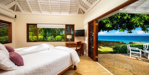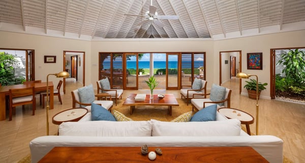 The Tryall Club requires all villa and condo guests to become members during their stay via a Temporary Membership Fee ($) (plus a 15% service charge). Children between the ages of 13 and 15 pay at a discounted rate (plus a 15% service charge). Guests can also pay per day, for guests ages 16 and older, who stay for one to four days. This can be either prepaid or upon arrival at the Club. For children 12 years of age and younger, our Temporary Memberships are complimentary. Please contact a Villa Specialist for exact pricing! Sunrise is a charming beach cottage on the oceanfront, offering a private sandy beach and a relaxed, open-plan layout. The villa’s easygoing atmosphere makes it the perfect spot for a getaway in paradise. This classic beach house is just steps from the Golf Clubhouse, with the main Club’s private beach and water sports facilities only a short stroll away. The villa feels wonderfully private, accessed through a beautiful courtyard before stepping inside to a spacious living area. Right beyond the living room, a large veranda opens up to stunning ocean views, and a lawn provides a safe, open space for kids to play. The living room is casually furnished with classic Jamaican wicker furniture, and there’s a separate dining area as well as a bar. Step outside to an expansive dining terrace, perfect for enjoying meals with an incredible sea view. Inside, three bedrooms are in the main house—one with a king bed and two with twin beds in a unique layout. The fourth bedroom is in a separate cottage and offers a luxurious king-size bed. A pool overlooks the beach and ocean outside, and manicured lawns surround the property. The villa also features a small organic garden, providing fresh produce for guests to enjoy.