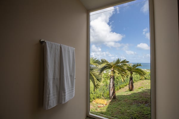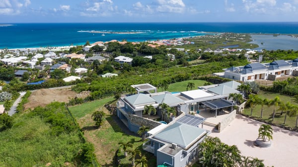Located on the heights of Orient Bay, Villa Karukera offers a breathtaking 180° view of Orient Bay, Anguilla and St. Barts in the distance. This beautiful, recently renovated, contemporary four-bedroom villa is the perfect place to vacation in St. Martin and enjoy the island life. Upon entering the villa, the incredible panoramic view dazzles with tropical mountains and the endless blue sea and sky. The villa’s beautiful outdoor spaces open to a free-form infinity pool, a large open deck with plenty of room for poolside sunbathing, and a gazebo with a sitting area to enjoy the cool island breeze and views of our smaller neighboring islands, Green Cay, Pinel, and Tintamarre. A covered outdoor dining area, located just steps from the kitchen, is perfect for enjoying al fresco lunches or dinners during cozy times with family and friends. The beautiful entryway leads to a spacious, open living and dining area with views of the pool and ocean. With ample seating, this great room is ideal for spending time with friends and family, as well as entertaining. The villa has a fully equipped kitchen with an island where you can prepare your meals or have them prepared by one of our recommended chefs, while enjoying a beautiful ocean view. The primary bedroom opening to the pool has a king-size bed, an ensuite bathroom with an outdoor shower, and a jacuzzi. The other two poolside bedrooms each have a king-size bed, and an ensuite bathroom with an outdoor shower. The fourth bedroom, located in a separate bungalow, a few steps away from the main house, offers a lot of privacy and a beautiful ocean view. It features a king-size bed, an ensuite bathroom, its own terrace, and a small kitchenette. The villa is ideal for families and couples, with the space and comfort to sit and relax while enjoying the sun and island life. Although secluded, you are only a three-minute drive to the famous Orient Bay beach, restaurants, bars, and stores. You are also a short drive from the fantastic culinary scene of Grand Case, or the beautiful beach of Anse Marcel. This villa can also be rented as a three or four-bedroom villa.