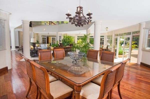 All guests must register with the Casa de Campo Concierge office, and for a small daily fee ($30 per adult per night & $15 per child per night), are granted access to resort areas and amenities. Casa de Campo Resort facilities and amenities include golf courses ($), the fitness centre ($), racquet center ($), restaurants ($) and bars ($). Contact Rental Escapes for more information about pricing. With living areas on the main floor and bedrooms upstairs, the stunning Villa Los Pinos is a two-story classic villa with the perfect set-up for sharing good times together with family and friends, while still enjoying individual privacy. Centrally located in the private gated community of Casa de Campo Resort & Villas, the pristine shores of Minitas Beach are just minutes away.