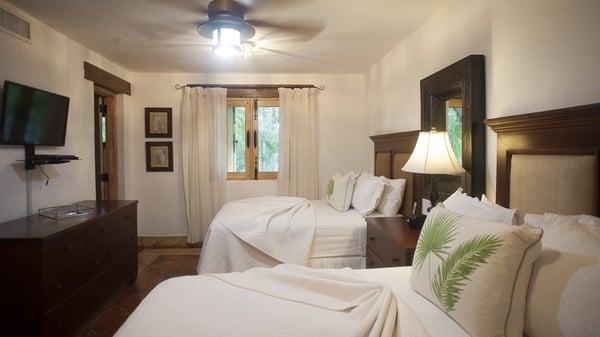 All guests must register with the Casa de Campo Concierge office, and for a small daily fee ($30 per adult per night & $15 per child per night), are granted access to resort areas and amenities. Casa de Campo Resort facilities and amenities include golf courses ($), the fitness centre ($), racquet center ($), restaurants ($) and bars ($). Contact Rental Escapes for more information about pricing. The luxurious Villa del Campo has Spanish colonial charm that fills every corner of this inviting one-story vacation home. Located just five minutes from the Casa de Campo Resort & Villas main hotel area by golf cart and close to the 7th hole of the Dye Fore golf course, this charming classic-category villa offers the ultimate resort experience in the most beautiful area of La Romana in the Dominican Republic.