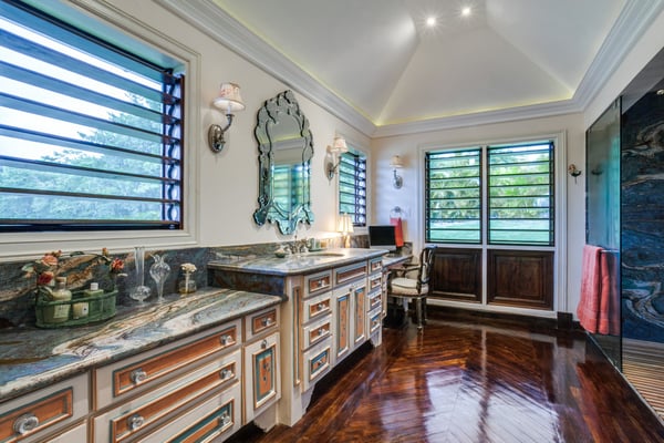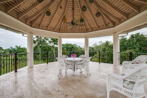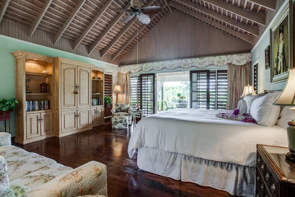 The Tryall Club requires all villa and condo guests to become members during their stay via a Temporary Membership Fee ($) (plus a 15% service charge). Children between the ages of 13 and 15 pay at a discounted rate (plus a 15% service charge). Guests can also pay per day, for guests ages 16 and older, who stay for one to four days. This can be either prepaid or upon arrival at the Club. For children 12 years of age and younger, our Temporary Memberships are complimentary. Please contact a Villa Specialist for exact pricing! Sundance is a breathtaking villa set amidst lush gardens, offering sweeping Caribbean sea views. With one of the most beautiful verandas at Tryall, the villa is the perfect blend of comfort, luxury, and relaxation. Located on Mahogany Drive, this villa spans one level with a seamless flow of space. The design embraces classic Jamaican architecture, bringing the outdoors in and making the most of its surroundings. The villa is furnished with handpicked designer fabrics and a curated collection of local art while focusing on ultimate comfort. The expansive gardens are a highlight, and an on-site kitchen provides fresh meal ingredients. The spectacular veranda, which spans the entire width of the villa, is the focal point of Sundance. It has a dining gazebo, several seating areas, and a sizable pool encircled by chic furnishings. A second dining space, ideal for evening cocktails, and a viewing bar are accessible via a stairway. The private gym in a lower gazebo offers a peaceful space to unwind. The pool has a fence that can be placed around it for small children. With seven beautifully appointed bedrooms, including a luxurious primary suite, sitting room, and private veranda, Sundance offers the perfect balance of privacy and communal spaces.