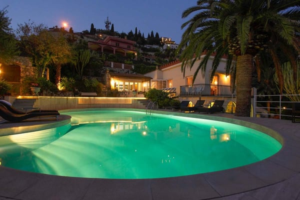 Villa Magna is an extraordinary two story Mediterranean villa that boasts spectacular and captivating ocean views. It is convenient to town, only 15 minutes walk, and it features private parking for up to three cars, a rarity in Taormina. The villa has being recently revamped with the highest level quality finishes and amenities. The interiors and exteriors are designed to optimize the space and to provide the guests with the maximum comfort. Light and bright, the house is nestled in its own private manicured garden and it boasts a stunning panoramic swimming pool and a separate Jacuzzi with chromotherapy. This is truly an amazing vacation home you do not want to miss! CIN: IT083097C2MI5ZXNQH