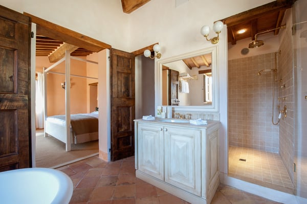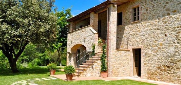 Montana is a beautiful country house featuring magnificent views of the Umbrian landscape from its blessed position on a hilltop. This independent villa set on two floors is ideal for families or friends reunions. The spacious and bright interiors as well the sprawling grounds are great for lounging in complete privacy and enjoying time in a magical setting. From here is possible to explore the most famous sites of Umbria and take day trips to Tuscany's most visited towns such as Siena and Florence, among many others.