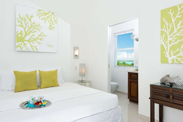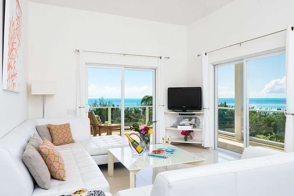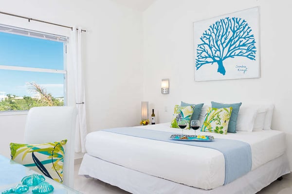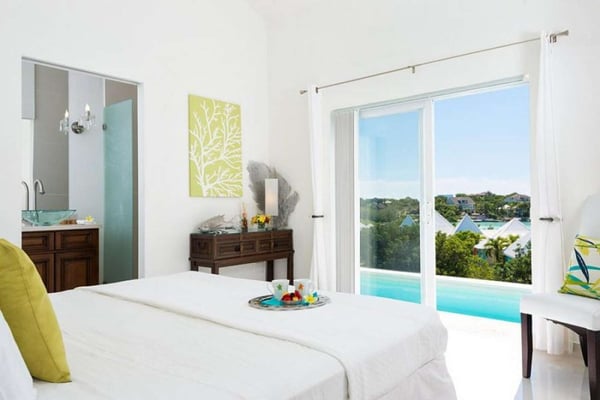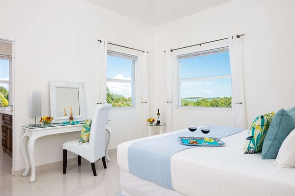 Villa Blanca is located within the prestigious Sunset Bay Private community on Taylor Bay. The villa is strategically built on the ridge just off the beach, offering spectacular ocean views. A private beach path with secured coded access, located adjacent to the villa's driveway, brings you right to the beach in 30 steps, where your loungers await you! Taylor Bay Beach is a beautiful white powdery sand half-moon-shaped, secluded beach. The water is warm, calm and shallow, making it very safe and enjoyable for young and old alike. From the moment you wake up you are entertained by the turquoise hues of the pristine waters of Taylor Bay just off your doorstep. Villa Blanca offers 360-degree ocean views of the Caribbean Sea and the surrounding Chalk Sound and Silly Creek. In fact, there is a fantastic ocean or water view from every room in the house! Last but not least, enjoy amazing, tropical sunsets from the wrap-around covered terrace and the infinity edge plunge pool. Villa Blanca is perfect for a couple's romantic getaway, honeymooners, a small family or good friends who want to have a tranquil holiday in an oceanfront setting with a pristine beach right at their doorstep. The villa is decorated in a contemporary style & white decor with a colourful splash of paintings, giving you a fresh and clean feel of a boutique hotel suite, within the privacy of your own villa. Ceiling fans throughout the villa provide cooling air. All windows and doors are screened. Most days have gentle ocean breezes that provide nice ventilation throughout the house. For those warmer days, split air conditioning is available in the living room and kitchen, as well as in every bedroom. Fully equipped kitchen with unique ocean and beach views while you are cooking! All stainless appliances, including a built-in electric glass cooktop with oven, microwave, refrigerator with freezer, and dishwasher. Blender, toaster, coffeemaker, Nespresso machine (with a start-up supply of capsules), water cooker, stainless steel pots and eco-friendly ceramic pans. All cooking utensils, dining plates, glasses and cutlery are provided. In-house laundry facility: washing machine and 2 dryers. Complimentary laundry detergents, hand and dish soap, cleaning products, dishwasher pods and garbage bags for your convenience. The living room offers a flat-screen TV. WiFi is available throughout the villa and on the outdoor porch. Landline with free local calls included. The covered wrap-around breezy porch provides shade and offers unobstructed ocean views and amazing sunsets. Infinity edge, fresh water plunge pool with colour adjustable LED lights and equally great ocean views. Thick cushioned teak patio & outdoor dining furniture. Ambient outdoor lighting. Gas barbeque. 4 private chaise loungers are provided for the guests on the beach, secured with a lock. Additional portable beach chairs, beach umbrellas, snorkel gear and beach toys are provided at the villa. There is a private driveway and ample parking right next to the villa. Complimentary bottle of wine, snacks, beers, water & fresh fruits upon arrival. Complimentary use of private Sunset Bay tennis courts a short walk away. Tennis rackets and balls are provided. Nightly, private security guards patrol of the community & beach area.