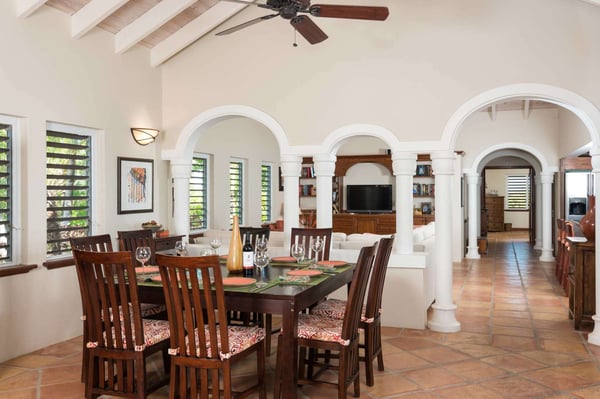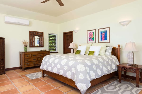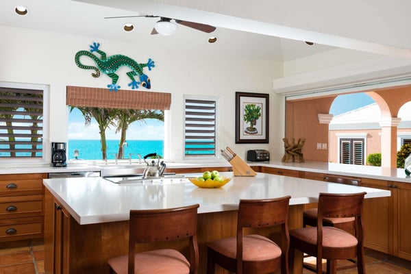 Villa Palermo is named after the European town located on the northwestern coast of Sicily. Constant upgrades, including all-new outside furniture by Restoration Hardware, all-new lounge and dining furniture, and new beds, are just a few of the amenities that make this villa such a home away from home. Be blown away by the breathtaking view of the Caribbean Sea the moment you step outside. Adjacent to the main house and overlooking the pool and ocean is a king-bedded master suite with its own bathroom. In addition, there are four spacious bedrooms in the main house, comprising a king bed with doors that open out to the pool and ocean. There is one queen bedroom, one double bedroom and one set of twins (which can easily be made into a king bed) to accommodate a total of nine or ten people. You will love preparing meals in the fully equipped kitchen. It not only has a large picture window overlooking the sea but also a roll-up shutter with a bar which connects to the comfortable, shaded outside area. A lounging pool is attached to the main lap pool and is ideal for small children. It is so easy to lose track of time once you are here. Nearly one and a half acres of well-tended landscaping make Villa Palermo a veritable paradise. Do not be surprised if you lose track of the days. Your vacation will go way too fast.