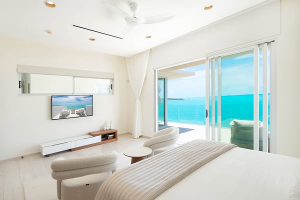 Sol y Luna is a contemporary, 3-bedroom oceanfront architectural masterpiece, providing the opportunity for true indoor/outdoor living. There are nearly 25 feet of sliding glass doors along the ocean side of the villa that can be opened at your discretion to the infinity pool, deck, natural landscape and turquoise waters beyond. Beautiful Taylor Bay Beach just steps away! The villa includes many special features to pamper your every need, such as a privileged gourmet kitchen that is suited to the best of chefs, your choice of formal atrium dining or an outdoor dining area protected by solar shades, a surround sound entertainment center, WiFi throughout, an unparalleled infinity pool that can be heated and uses a state of the art sanitizing system that requires far fewer chemicals than most. The exceptional rooftop terrace inspired the name of the villa, and offers a stellar vantage point as nature treats you to a dazzling display of vibrant pastels at sunrise and sunset, along with amazing views of the moon. Just a two-minute walk from the villa, a quiet footpath will bring you to Taylor Bay, one of the island’s best-kept secrets. This soft white sand beach is calm, sheltered and shallow, making it ideal for relaxing with a good book while enjoying a most impressive view. Sol y Luna and its surroundings promise a tranquil, luxurious and unforgettable Caribbean living experience.