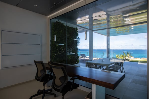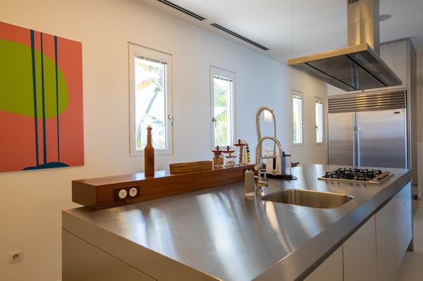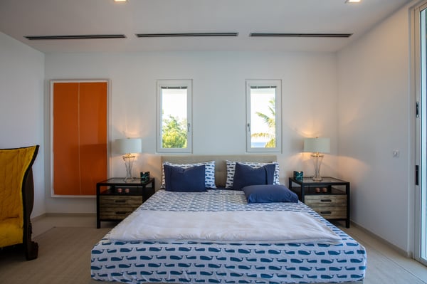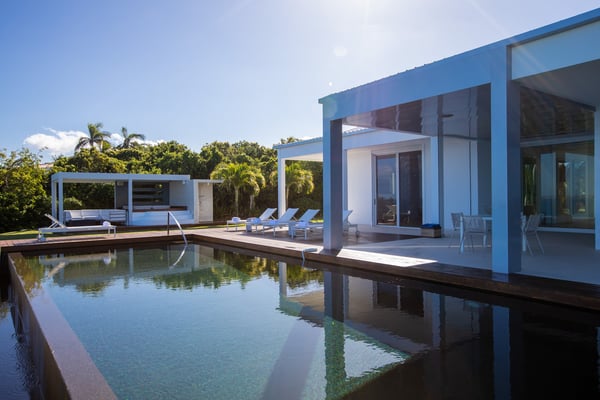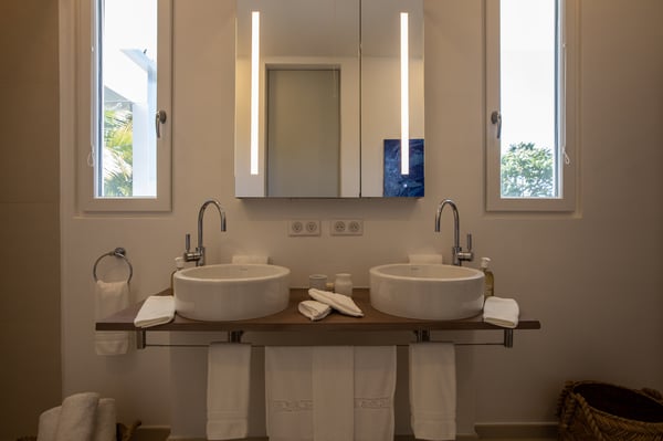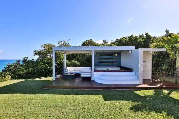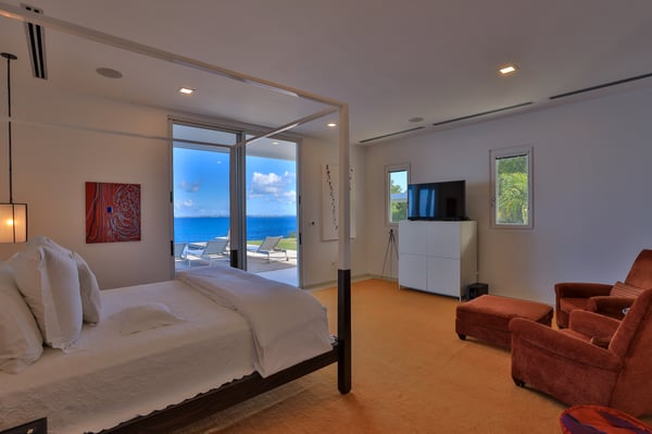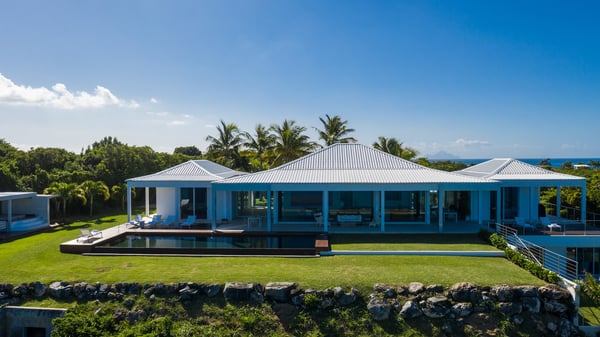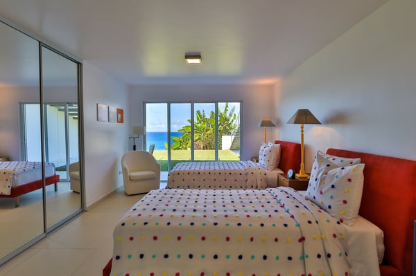 Villa Truffle in St Martin an amazing, luxurious and modern five-bedroom villa Villa Truffle, is a luxurious retreat nestled within a meticulously maintained tropical garden. This exceptional property is perched on a clifftop, offering breathtaking views of the Caribbean Sea, Anguilla, and stunning sunsets. The first two bedrooms boast ensuite bathrooms and overlook the terrace, living room, and dining room, providing a seamless connection to the main living spaces. Two additional bedrooms, one of which features two single beds, are situated on the lower level and also offer their own ensuite bathrooms. For those seeking added privacy, the fifth bedroom is located in a separate bungalow. This charming space includes an en-suite bathroom, a fully equipped kitchen, and a small private terrace, ensuring a tranquil and exclusive stay. Villa Truffle boasts a range of indulgent amenities, including a heated pool that invites guests to relax and unwind amidst the Caribbean ambiance. The chef-worthy kitchen is a haven for culinary enthusiasts, while the spacious and luminous living area provides a welcoming space for socializing, relaxation, and entertainment. With its flexible bedroom configurations, Villa Truffle is an ideal choice for a variety of occasions. Whether you're planning a family vacation, a getaway with friends, a romantic escape, or any other special event, the villa's versatile layout can be tailored to accommodate groups of different sizes. Experience a true taste of luxury at Villa Truffle, where impeccable design, idyllic surroundings, and modern amenities converge to create an unforgettable stay in St. Martin.