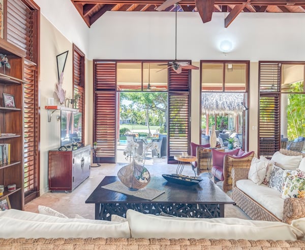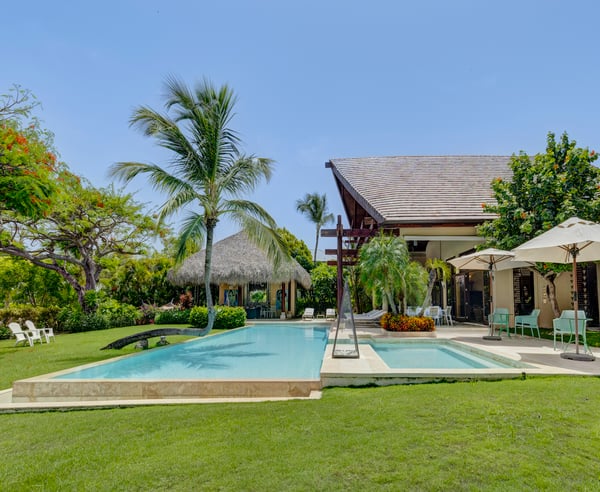 Guests staying within Puntacana Resort & Club will have access to all resort amenities and facilities. Resort amenities and facilities include two golf courses ($), two beach clubs ($), Six Senses Spa ($), restaurants ($), bars ($), and tennis centre ($). From the coralina stone deck to the expansive garden views, Villa Caballet offers a spacious tropical backyard with a stunning 120m² pool — perfect for cooling off under the sun. The decor has been carefully selected to reflect a refined tropical style, enhancing the villa’s natural charm. Overlooking Hole 1 of the Tortuga Golf Club, and just 200 meters from the beach, La Cana Golf & Beach Club, and nearby restaurants — all within a 5-minute walk — this villa is a peaceful retreat surrounded by lush greenery and timeless Caribbean vibes.