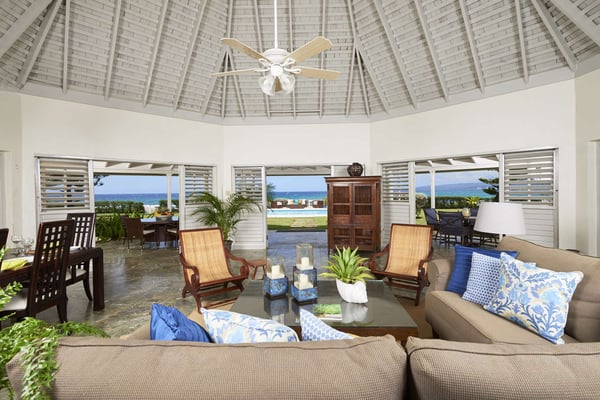 Terra Nova is a beautiful waterfront villa located in exclusive Mammee Bay. When you enter the villa you are immediately struck by the wonderful, spacious living/dining area with Italian marble floor and a 27-foot conical ceiling. The room opens up to a large covered veranda and 36-foot fresh water pool. A paved walkway leads out directly to the ocean. In addition, ocean swimming at private Bamboo Blu Beach Club is a short walk away. The property has four large bedrooms, all recently air conditioned, and four bathrooms all with attached dressing rooms. The primary bedroom is located on a private second-floor addition with spectacular views of the Caribbean Sea, mountains, and the town of Ocho Rios. The property has a full staff of four, composed of a cook, housekeeper, laundress, and gardener.