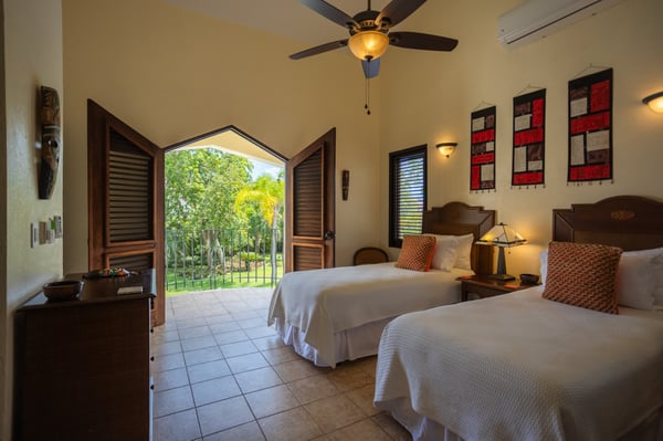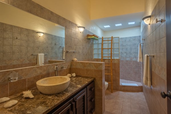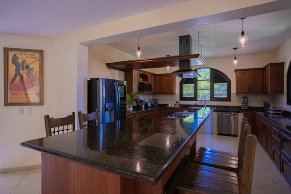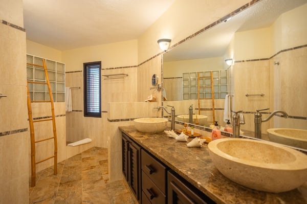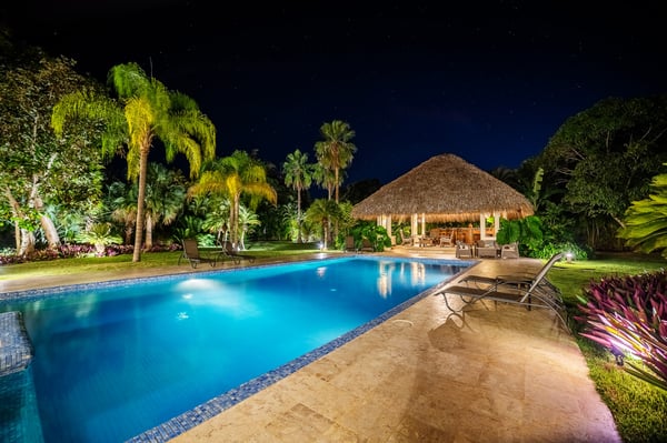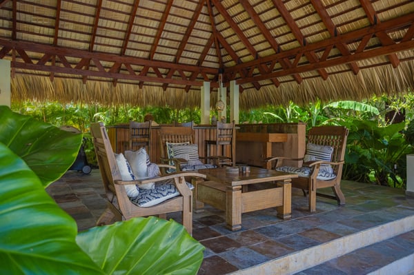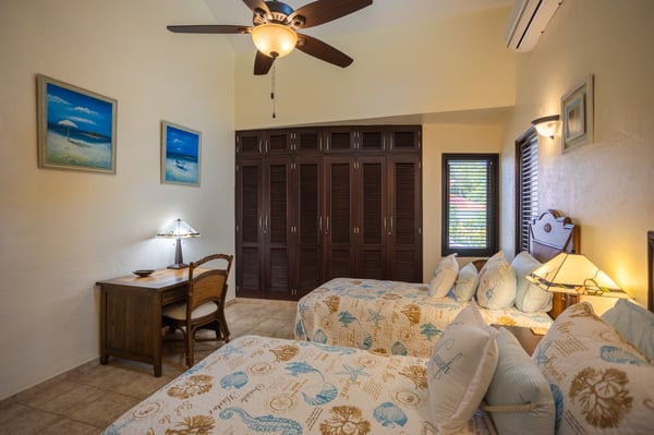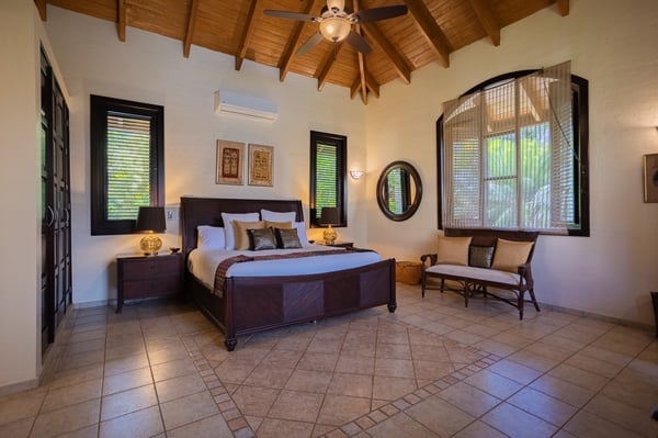 This expansive two-story, five-bedroom villa is impeccably maintained and stylishly decorated with guest’s comfort in mind, from high-quality sheets and window treatments that let in just the right amount of light. Three bedrooms are on the top floor and two large suites are on the ground floor. Large common areas with comfortable seating are available in the ground floor living and dining areas, and a large eat-in kitchen is yet another great area to share time. A focal point of this beautiful estate is a covered outdoor gazebo facing the oversized swimming pool, which is perfectly suited for relaxing or swimming laps. Casa Las Brisas has the added appeal of a Jacuzzi adjacent to the master suite, perfect for relaxing. Enjoy the ocean breezes and relax in the gazebo where you can read, or enjoy an al-fresco nap by the pool, listening to the gentle rustle of palm trees while soaking up the Caribbean air.