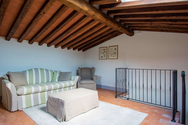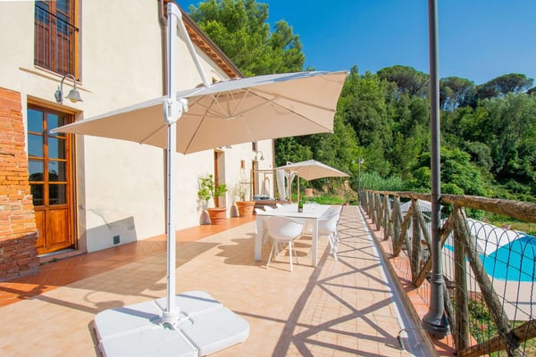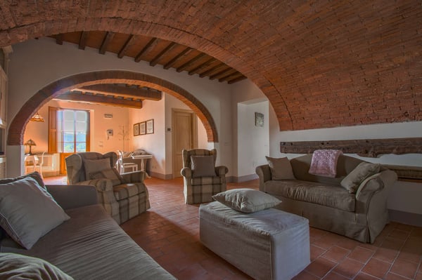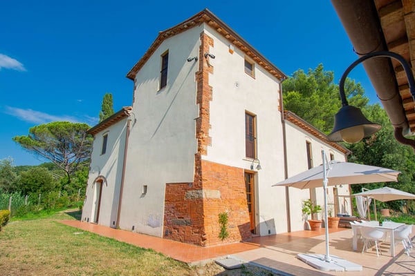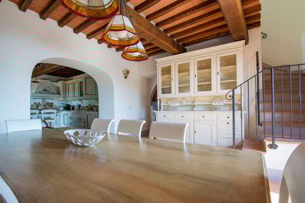 Villa Ilaria is set on a beautiful estate just a mile away from Palaia, a charming village between Pisa and Florence. The restoration of the property was recently completed, and it is composed of two separate country houses next to one another. Both houses enjoy breathtaking views of the typical Tuscan landscape. The main villa and the annex are both on two floors and they have a common contemporary style with some traditional pieces and architectural details, such as wood beamed ceilings and terracotta floors, which bring warm touches to the spaces. The main attractions of Villa Ilaria are the high end finishing and amenities that provide the utmost comfort.