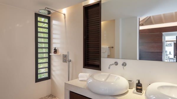 Located near Flamands and Saint-Jean, the luxurious villa The One is a splendid property in front of the ocean and the Bonhomme and Frégate islands. In a paradise setting of green hills, this three-bedroom vacation home is both elegant and refined, a perfect place for an unforgettable stay in Saint-Barth. Recently renovated, the vacation rental The One welcomes guests in bright spaces with contemporary decor and clean lines. The large living room opens entirely onto the terrace with a fantastic view over the ocean. Itis furnished with large armchairs with curved lines as well as a deep sofa for relaxation. The well-equipped kitchen is located at the back of this beautiful open space where the trade winds gently blow and bring a pleasant feeling of well-being. Wall frames, black and white photographs, woven rugs, cozy cushions and refined decorative objects create a peaceful atmosphere you will enjoy immersing yourself in, as time seems to be suspended. On the terrace, a beautiful alfresco dining room which can accommodate up to six guests is set up under the covered area for delightful dinners in the gentle Caribbean air. There is also a pleasant outdoor lounge, the perfect place to sip a drink or have a chat in the mild air of Saint-Barth. At the front, there is a splendid swimming pool in front of the ocean view, surrounded by lounge chairs perfect for sunbathing, reading or relaxation sessions. The tropical vegetation of the hills provides a lovely green touch to this enchanting setting, between tall palm trees and local shrubs. The luxury villa The One offers three beautiful air-conditioned bedrooms with ocean views and en-suite bathrooms. They feature king-size beds and office areas in a very refined decor. Two bedrooms are located on either side of the living room and open onto the terrace with pool, while the third one has a private balcony with a breathtaking view over the blue waters of St. Barth. Exclusive and very private, the vacation rental THE ONE is the perfect place for an unforgettable interlude with family or friends in the heart of the Caribbean.