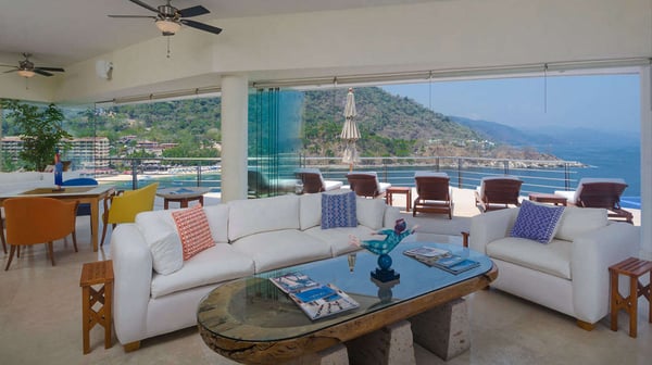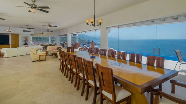 Casa La Vista's internet can be unreliable. Contact a Rental Escapes villa specialist for more information about how this may impact your stay. With our two year expansion project just completed in 2013, Casa la Vista now offers 25,000 square feet of luxury oceanfront vacationing and amazing sunsets year-round! Perched majestically on the outer edge of Mismaloya Cove, with a north south wing and an east west wing, Casa la Vista (translated 'house with the view') has a combination of amazing views quite unique and impressive! Tremendous amount of public lounging space indoors and out, perfect for large groups, special occasions and wedding events. Fantastic full floor game room, with full kitchen/bar, pool table, poker table, blackjack table, Foosball table, air hockey table and entertainment cabinet with home theater and BOSE music system for indoors and outdoors. The full floor primary suite includes a living area, dining area, full granite kitchen, walk-in closet, full bath with two person shower and two person Jacuzzi, as well as an incredibly large oceanfront deck. the third primary bedroom also offers a nice private garden patio, with platform beach lounge area.
