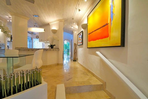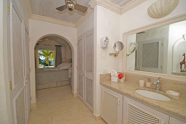 Please note that due to the passage of Hurricane Beryl, this property may have limited beachfront access. Nearby construction may result in noise disturbances. For further details on how this might affect your stay, please reach out to a Rental Escapes villa specialist. One of just six luxury villas wonderfully sited on Gibbs Bay in over an acre of landscaped gardens. Each villa has three generously large air-conditioned bedrooms, two on the upper level and one of the ground floor, all with private patios enjoying spectacular views of the Caribbean Sea. All bedrooms feature bathrooms en suite. Ceiling fans are throughout. In addition to excellent beach and swimming facilities, there is a large saltwater pool for the exclusive use of residents.