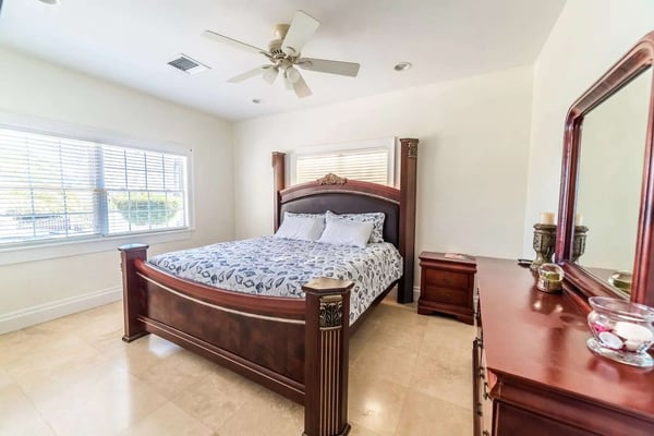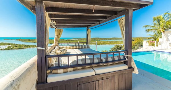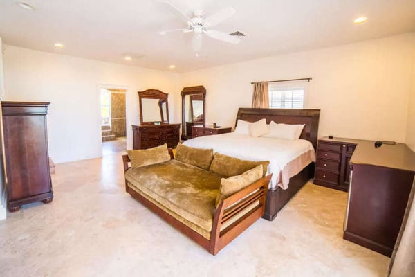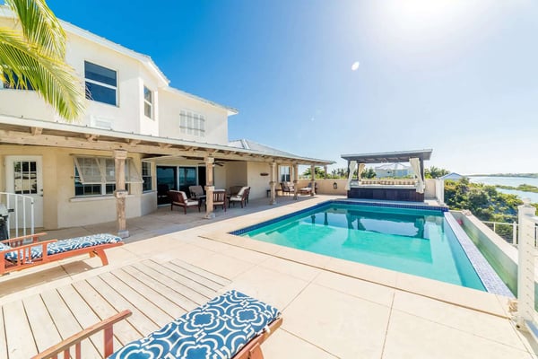 20 minutes away from Providenciales International Airport, this spacious home sits perched overlooking Chalk Sound Creek and ocean. With a stunning sunset view, an amazing infinity pool, which is one of the highlights of the home that appears to blend into the ocean. Relax in the hot tub spa or after retiring from swimming kick back, relax with a cool refreshing drink on one of the decks in a comfortable chaise or just fall asleep in the day bed. For fun head on down to the dock where you may fish with the possibility of catching your dinner for the night; go swimming in the ocean; or enjoy kayaking in the beautiful Chalk Sound Creek, or simply unwind with a game of pool in the game room. No need to miss out on your daily work out routine. Enjoy your regular workout downstairs in the gym while enjoying a view of the ocean. Inside, enjoy the tranquil ambiance, with open living space. Each room features a 30" to 60" television. The den/library has a desk and sitting area where you may have some peace and quietness to check in at the office at the same time send your co-workers pictures of your vacation. The kitchen is fully equipped with all the necessary appliances you will need to make you feel at home. This four-bedroom house comfortably sleeps eight to ten guests. All bedrooms have a view of the ocean, ceiling fans and air conditioning. The famous Taylor Bay Beach is five minutes drive away from the villa and the famous Las Brisas Restaurant is a three minute walk from Taylor Beach. There you may tour the Chalk Sound National Park on the Pontoon Cruise at Las Brisas. You cannot leave without having lunch at Bogaloos in Five Cays where you may literally have lunch on the water and watch the waves come in.