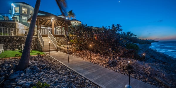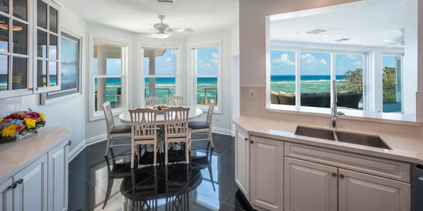 Welcome to Great Bluff Estates, a gated oceanfront villa set into the bluffs of Grand Cayman’s Northside. This recently renovated 5-6 bedroom home offers a large family all they could want from excellent snorkeling steps off the backyard to a stunning elevated sundeck and private freshwater pool and hot tub. The curb appeal of Great Bluff Estates includes a cobalt-blue tiled roof, bright white stucco exterior, and a terra cotta circular driveway that can easily accommodate multiple rental vehicles. The home offers multiple oceanfront decks and balconies, two tiers of terraced artificial grass near the shoreline, two furnished cabanas, and a new concrete path to the ocean. The beach is naturally pebbly, so the owner tries to maintain a raked sandy area for water access. Guests can relax in privacy as the owner owns the undeveloped lot next door to the east. The snorkeling here is amazingly diverse due to there being very few homes in the area. We tend to see spotted eagle rays, octopus, lobster, eels, and many schools of fish inhabiting the coral heads. There is also rarely any current in the waters here. Beach Notes The beach behind Great Bluff Estates is both pebbly and sandy. It is by no means a barefoot beach as the beach here is reef protected which creates a marine environment of corals and grasses for all of our marine life to live in! Please wear pool shoes or swim fins when in the water and be mindful not to damage the corals. The snorkeling here is superb, as there are never many snorkelers in the water to spook the rays, tarpon, grouper, juvenile schools, etc. We often see eagle rays swimming by from the pool deck...as well as lines of squid out near the reef. If you want a barefoot beach for swimming, we have two large resorts in the east end only 10 minutes from us that are both open to the public, and have restaurants, bars, watersports, etc. General Grand Cayman Beach Notes All beaches in Grand Cayman are technically “public” since the Queen owns up to the high watermark and the shoreline quality behind your property may vary seasonally. Be advised that the beach or water entry behind your property may vary slightly from the images on our website because of the weather. The next-door beach is also always available for your use. Ocean Debris and Sargassum Seaweed Beaches in Grand Cayman may also experience floating ocean debris and sargassum weed seasonally. Sargassum is a generally harmless floating seaweed that has increased in frequency in recent years. Although sargassum is an unsightly nuisance, it is largely seasonal in summer. The owners do make efforts to remove heavy sargassum and will have the beach raked prior to your arrival. We try our best to work around mother nature.
