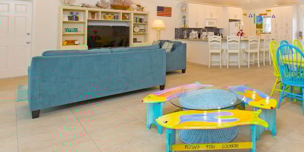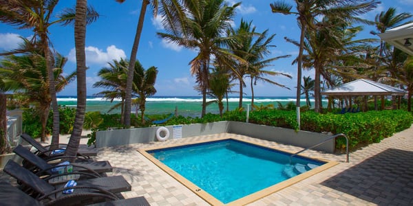 Coconut Beach is an oceanfront family-friendly oasis located in the picturesque Rum Point community along Grand Cayman's north coast. This large, one-story beach villa spans 4 200 square feet and can sleep 12 guests across five bedrooms in the main house, plus a detached one-bedroom, one-bath studio suite above the garage. Perfect for vacationing grandparents, or in-laws, the studio suite provides added privacy and is never rented out to unrelated guests during your stay. The focal point of the main house is the great room. Connecting both bedroom wings of the villa, and opening onto an enclosed sun porch, the great room provides sunny ocean views throughout the living, dining, and kitchen areas. With its airy, open-concept design the great room includes a dining table with seating for 10, a TV den with two cozy couches, and a full kitchen with breakfast counter seating for six. A separate kids' table with chairs is provided for our tiny guests. Outside, guests at Coconut Beach will enjoy the villa’s sandy, palm-shaded beach great for long walks, or lazy afternoons with your toes in the sand. The villa’s wraparound patio leads to a new beach cabana with ample seating for sunset viewings. The pool deck is furnished with multiple loungers surrounding the villa’s freshwater plunge pool. An outdoor shower sits off the pool deck to rinse off after a long day of sun and surf. Beach Notes The entire island is only 22 miles wide from west to east, so you are never too far from anywhere on Grand Cayman. The homes on the oceanfront in Rum Point offer great reef-protected snorkeling. The beaches usually have plenty of white sand, but also can have spots of rocky “ironshore” with natural rock formations. The closer you get to Rum Point, usually the sandier the beach as well as swimming. Either way, with the abundant marine life we have in the water, you will want to wear foot protection (pool shoes or fins). The prevailing breeze (trade winds) from the east also makes flying insects less of a nuisance—many of the homes in Rum Point don’t even need a screened porch. The big draw to this area is the proximity to the Rum Point Club, a public beach club that offers a fantastic barefoot beach, many water sports, a restaurant bar and grill, a gift shop, and pick-up beach volleyball games. Also near Rum Point is the Kaibo Yacht Club restaurant, bar and marina Lastly, we have two large resorts in the east end (Morritt's and The Reef) that offer manicured beaches as well as restaurants, a modern grocery store, liquor store, gift shops, a Subway sandwich shop, and a cafe/pastry shop. These two resorts also offer scuba, snorkel trips, jet skis, windsurfing, kiteboarding, oceanfront pools and bar service. General Grand Cayman Beach Notes All beaches in Grand Cayman are technically public since the Crown owns up to the high water mark. The shoreline quality behind your property may vary slightly from the images on our website due to shifting tides and weather patterns. The next-door beach is also always available for your use. Ocean Debris and Sargassum Seaweed Beaches in Grand Cayman may also experience floating ocean debris and sargassum weed seasonally. Sargassum is a generally harmless floating seaweed that has increased in frequency in recent years. Although sargassum is an unsightly nuisance, it is largely seasonal in summer. The owners do make efforts to remove heavy sargassum and will have the beach raked prior to your arrival. We try our best to work around mother nature.