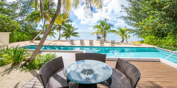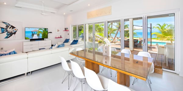 Welcome to White Cottage. This contemporary, open-concept villa offers guests an opportunity to spend their vacation amid sumptuous interiors with smart-home technology, gated privacy, and scenic Caribbean views. An oceanfront wall of glass and screened porch blend stunning views with protected intimate spaces for quintessential indoor-outdoor island living. With heavy landscaping and no neighbors on either side, White Cottage will be your private oasis after a day in the sun and water. A 100-foot private dock with a thatched cabana provides a relaxing spot above the waves. Enjoy sunsets, happy hour, or alfresco dining above the waves. Intrepid snorkelers can use the dock ladder for gentle water entry before exploring the nearby reefs. All guests receive free snorkel gear upon check-in at Silver Thatch Welcome Center. Inside, the home's kitchen comes fully equipped with an electric cooktop, dual ovens, a built-in refrigerator, microwave, dishwasher, and twin wine/beverage fridges. Prepare a home-style dinner or hire a private chef for a night of in-villa fine dining. A large formal indoor dining table seats eight guests. The outdoor dining table on the screened porch seats eight guests for meals with oceanfront views. Beach Notes The entire island is only 22 miles wide from west to east, so you are never too far from anywhere on Grand Cayman. The villas in the Cottage District on the southeast coast offer great reef-protected snorkeling plus proximity to the best dive operators on Cayman--Ocean Frontiers and Tortuga Divers. Being on the south coast the water tends to be very calm on the beaches. The water behind White Cottage is usually calm and has a sandy water entry for the first 3-8 feet. This is a reef-protected marine environment and the snorkeling can be wonderful, even in shallow waters. General Grand Cayman Beach Notes All beaches in Grand Cayman are technically public since the Crown owns up to the high watermark. The shoreline quality behind your property may vary slightly from the images on our website due to shifting tides and weather patterns. The next-door beach is also always available for your use. Ocean Debris and Sargassum Seaweed Beaches in Grand Cayman may also experience floating ocean debris and sargassum weed seasonally. Sargassum is a generally harmless floating seaweed that has increased in frequency over the years during the summer. Our owners do make efforts to remove heavy sargassum and will have the beach raked prior to your arrival. Should sargassum weed be extremely heavy behind your property, we will reach out to the owner for solutions. We try our best to work around mother nature.