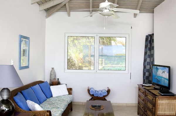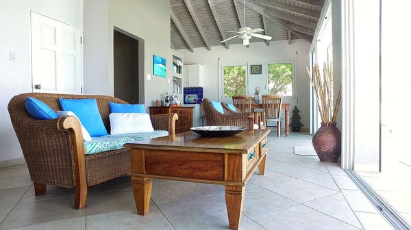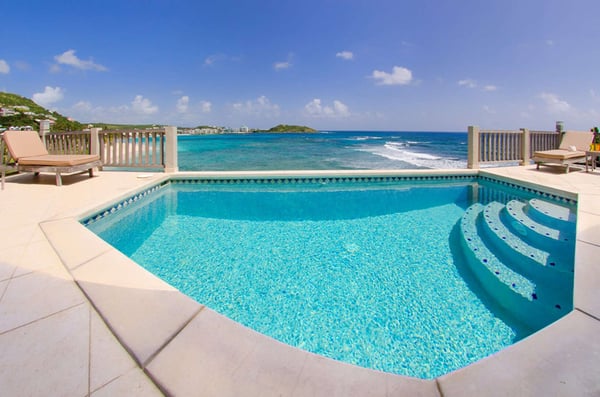 The Beach House Younes is truly one of a kind. A very special place. Its location is perfect, being directly on the ocean and Dawn Beach, one of the island's finest beaches. The home offers exceptional views of the sea and Dawn Beach and direct access to both. Completely renovated, including but not limited to, all new Tekalu windows and doors, rolling systems on all windows and doors, sophisticated alarm system, fully automatic generator, newly painted in and out, fully air-conditioned with new fans, and modern lighting in and out. The villa is split into two levels and the interiors offer tiled floors and are furnished with a combination of rattan and handmade pieces imported from Indonesia. The upper level offers stunning views from the living, dining, and kitchen areas. The villa boasts a custom kitchen with modern stainless steel appliances and brightly colored blue tile, which nicely complements the white shutter cabinet door. The living and dining areas are truly indoor/outdoor. The entire wall of the villa facing the pool and sea is made of sliding doors that open almost the entire length of the wall, creating spectacular views from everywhere on the upper level of the villa. A separate sitting area for enjoying TV is tucked behind the main living area. Outside, the infinity-style pool is set on a tiled deck that offers seating for four guests on comfortable teak lounge chairs. This unit offers two bedrooms and two and a half baths. Each bedroom offers a king mahogany bed and an en suite custom bathroom with a shower. Each bedroom has French doors that open onto a private deck overlooking the beach and sea. Stairs lead from the private decks of each bedroom down to the larger sundeck located just above the water. There is also one on the lower deck that is directly on the sea, and our own coral beach is located in front of the Villa. This also gives you direct access to the sea and Dawn Beach, along with the Westin Dawn Beach Resort Casino and Spa. This villa is the perfect place to relax and have a wonderful Caribbean holiday, where the views are simply breathtaking.