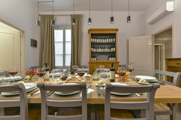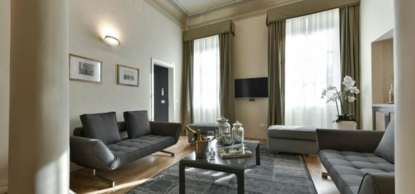 This is a fashionable property in an exclusive location in the heart of Florence! On the third floor of an historical Florentine palazzo with elevator, Scudo has been completely transformed to a calming and serene urban oasis. The four-bedroom exquisite apartment boasts traditional architecture that dated back to 1600, a clever monochromatic palette that unifies the entire space including minimal and clean-lined furniture. Scudo is an elegant and very sophisticated apartment, and yet, you will feel it welcoming and exceptionally comfortable.