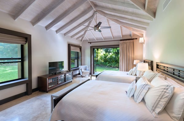 Guests staying within the world famous Sandy Lane Estate will have complimentary access to all Clubhouse facilities including beach chairs, umbrellas and tennis courts. Happy Trees is a magnificent four-bedroom villa tastefully furnished and set on over an acre of beautifully landscaped grounds including mature trees and tropical foliage. A successful blend of modern finishes and furnishings keeping comfort at the forefront, this home offers an open plan living and dining area as you enter, leading to a large, covered patio where an informal lounge area and dining are available for guests to enjoy. Eco-friendly aspects and cutting-edge technology are a trademark of Happy Trees, from the recycled roofing materials, led lighting throughout the house and garden, rainwater collected in underground tanks and used for irrigation, insulated sliding doors and solar water heaters, the owners have been mindful of the environment when creating this holiday getaway. Indoor/outdoor lighting and music systems allow you to light up the garden and inside the house at night when enjoying a cocktail with friends and family. Create the atmosphere you wish within different sections of the property with soft strains of classical music in the dining area, while contemporary sounds liven up the terrace or pool areas. Located in the Southern wing of the villa, the four air-conditioned bedrooms complete with ensuite bathrooms are equipped with uber-comfortable mattresses, high-quality linens and lots of pillows, flat-screen TVs, Apple TV, Wi-Fi, and Hair dryers, all providing luxurious element to your holiday. All four bedrooms look onto the garden which surrounds the property and with large glass doors, allowing the natural light in while you relax and enjoy the tropical scenery. If you prefer a later start to your day just close the drapes and stay beneath the covers. A study located off the master bedroom, a central TV room and a large, well-equipped kitchen complete this home. Enjoy a refreshing cocktail on the deck of the large infinity saltwater pool set amidst the lovely garden or lay on a lounge chair reading a book while you soak your toes in the sparkling water. A gazebo next to the pool complete with an icemaker offers a smaller table and chairs along with additional seating allowing you to enjoy the outdoors in comfort. An added advantage of staying on the Sandy Lane Estate is the Private Property Owners Beach Facility located beside the Sandy Lane Hotel, complete with your own cabana where you can store your personal items. Complimentary lounge chairs, sun umbrellas and changing rooms are also available for your use and a bar offering refreshments in a sheltered seating area makes for enjoyable days at the beach, including swimming in the sea and walks along the sand.