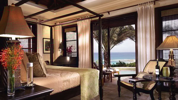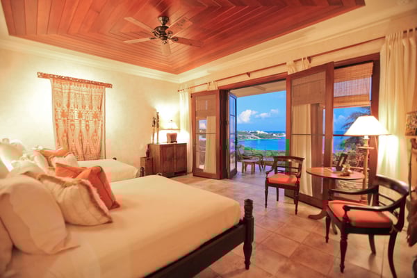 Perched on an enchanting cliff, Bird of Paradise offers panoramic views of the Caribbean Sea and the nearby islands of St. Bart and St. Martin. The villa embraces the concept of indoor-outdoor living, with walls that fold away to create a seamless space filled with gentle breezes and tropical scents. This retreat includes a magnificent indoor living room and additional outdoor living areas, one of which features a cozy fireplace. The property boasts three dining areas, including an elegant outdoor veranda overlooking the manicured gardens, ocean waves, and neighboring islands. Guests can unwind on the terraces or on an exclusive Indonesian daybed nestled among palm trees with panoramic ocean views. The villa features four suites and a flexible office space that can serve as a fifth bedroom. Each suite offers its en-suite bathroom, a private balcony, and breathtaking views. Each suite has a refrigerator and coffee service for added convenience. A brief and scenic walk from Bird of Paradise takes you to the stunning, crescent-shaped Sandy Hill Bay beach. This protected bay is perfect for swimming and provides a safe harbor for a small yacht. The villa's prime location offers easy access to Shoal Bay East, gourmet dining establishments, delightful local shops, and lively nightlife. You can enjoy various activities, including snorkeling, kayaking to nearby islands, or horseback riding along the shore.