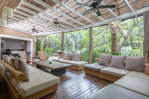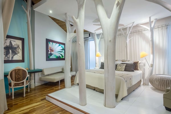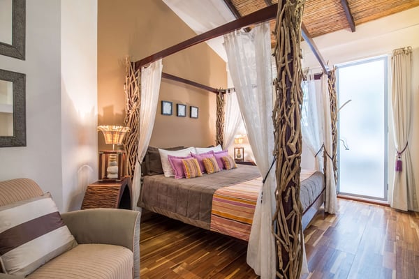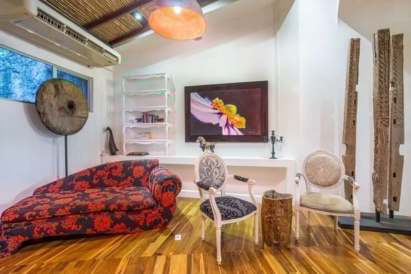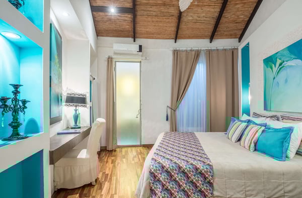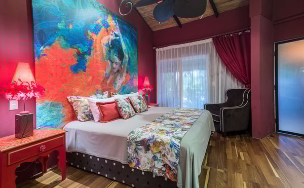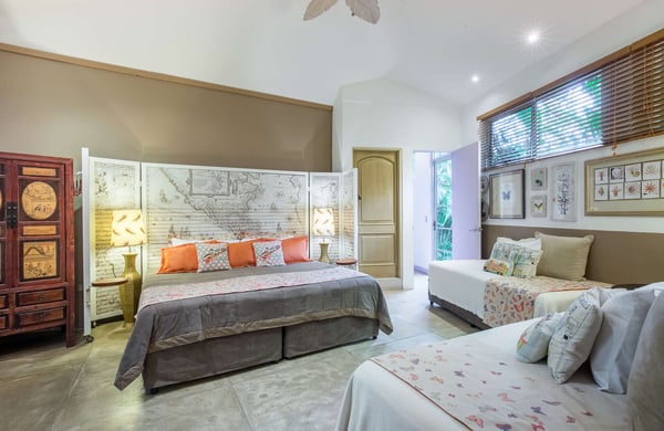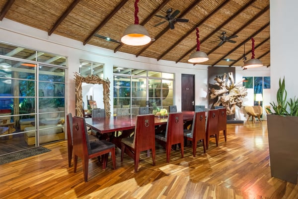 To understand what it's like to stay at Villa Don Vito, you have to close your eyes. Now imagine that you are standing in the center of an Artist's Fantasy. You open your eyes and look up to see a blue sky with fluffy white clouds, lit by a thousand glittering lights. You slowly turn 360 degrees, taking in the eight uniquely decorated bedrooms, the grand seating area floating on a gorgeous hibiscus carpet, the entertainment area, the dining area and the kitchen that professional chefs would dream about. And you're still inside. The fantasy continues outdoors. Feel yourself immediately relax as you step onto the covered patio, furnished for relaxation and enjoying the alfresco life that is Tamarindo, Costa Rica. But the beauty and serenity don't stop at the patio you hear water running and your eyes are drawn to the lush tropical garden surrounding the swimming pool and its waterfall; you are certain you are in a tropical lagoon. With all of this beauty, comfort and serenity, you may end up staying your entire vacation at Villa don Vito and not venturing off of the property! Your surroundings are wonderful, and the experience goes beyond your beautiful surroundings daily maid service. And, if you'd like your stay to be pure luxury, you also have an on-call chef available to cater delicious meals. This modern boutique villa experience shared with up to 21 other close friends and family. Close your eyes again. Now imagine how wonderful you feel after staying at the beautiful Villa Don Vito.