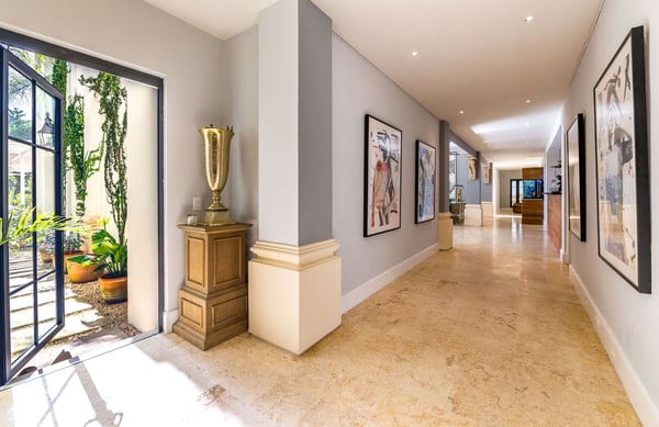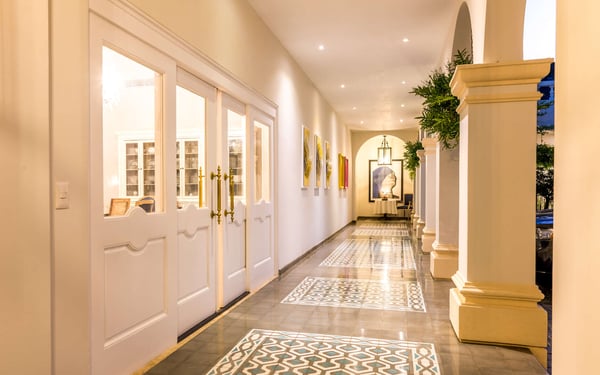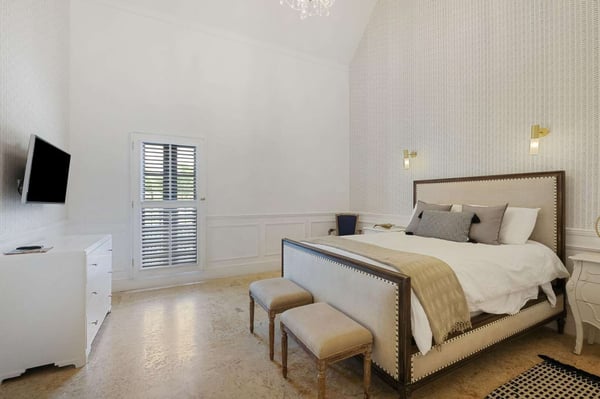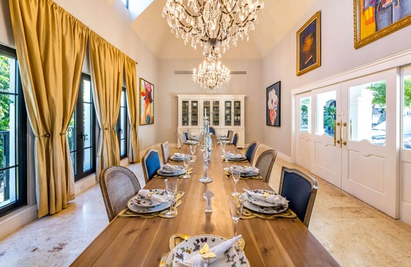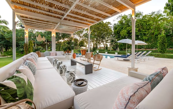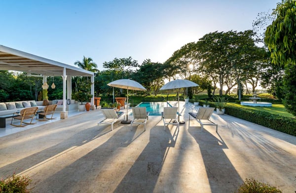All guests must register with the Casa de Campo Concierge office, and for a small daily fee ($30 per adult per night & $15 per child per night), are granted access to resort areas and amenities. Casa de Campo Resort facilities and amenities include golf courses ($), the fitness centre ($), racquet center ($), restaurants ($) and bars ($). Contact Rental Escapes for more information about pricing. Le Chateau is a stunning six-bedroom villa in the exclusive Cacique neighborhood of Casa de Campo, offering the perfect balance of modern luxury and timeless elegance. Just minutes from the beach, marina, and resort amenities, this bright and beautifully designed home is ideal for families or groups looking to relax in style. Behind its signature wooden gates, a grand stone courtyard welcomes you into airy hallways framed by white archways, orchids, and curated art. Inside, the villa features polished Coralina stone floors, six spacious bedrooms with en-suite bathrooms, and three additional half-baths. The elegant dining room seats up to 16 guests, blending vintage French charm with a curated collection of dinnerware, all next to a fully equipped gourmet French Blue kitchen. Le Chateau is made for effortless entertaining, with multiple indoor and outdoor dining and lounging areas. Alfresco meals are elevated by the villa’s lush surroundings and expertly prepared Dominican and international cuisine by a private chef, available year-round. From poolside afternoons to sunset dinners and quiet courtyard mornings, Le Chateau offers a sophisticated yet relaxed setting to enjoy every moment in Casa de Campo.