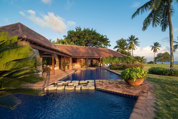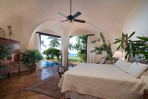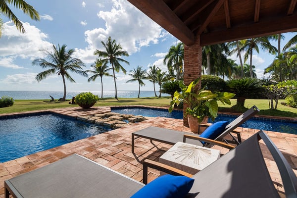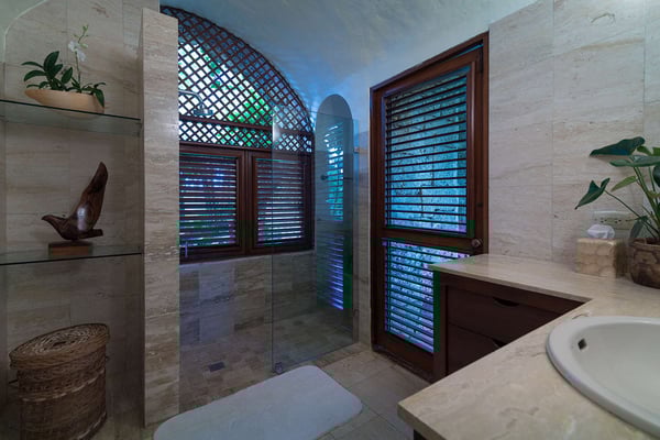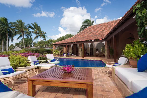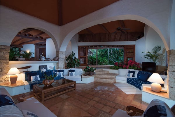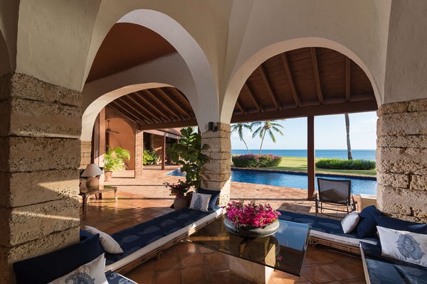 All guests must register with the Casa de Campo Concierge office, and for a small daily fee ($30 per adult per night & $15 per child per night), are granted access to resort areas and amenities. Casa de Campo Resort facilities and amenities include golf courses ($), the fitness centre ($), racquet center ($), restaurants ($) and bars ($). Contact Rental Escapes for more information about pricing. This stunning oceanfront villa, designed by renowned French architect and artist Savin J. Couëlle, offers an extraordinary retreat with breathtaking views of the Caribbean Sea, the Teeth of the Dog Golf Course, and Catalina Island. Featured in Architectural Digest, the villa reflects Couëlle’s iconic artistic and organic style. High-ceilinged living spaces are adorned with signature archways, stone accents, and pastel hues, creating a unique and visually captivating ambiance. The main master suite enjoys a prime location, offering guests panoramic sea views right from the bed. A second master suite and two guest bedrooms, all air-conditioned with en-suite bathrooms, provide ample comfort and privacy. With attentive staff dedicated to ensuring a seamless and enjoyable stay, this villa combines world-class design, stunning surroundings, and exceptional service for an unforgettable Caribbean escape.