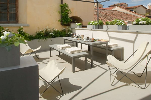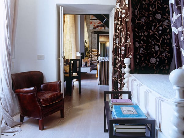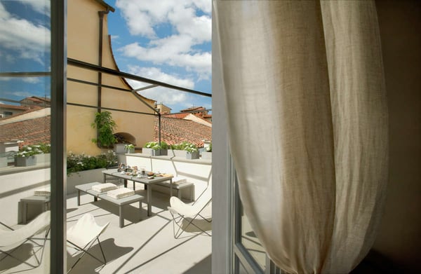 Medea is an exquisite five-bedroom apartment with a spectacular terrace and is located in the heart of the historical center of Florence. The apartment is built on two levels and is set inside a historical landmark building with an elevator. The interior decor is very sophisticated. The mix of luscious colors warm browns and taupes with powder grays create a serene escape throughout the entire space. Luxurious materials are combined with tasteful minimalist use of furniture, creating a very interesting design. The fashionable and contemporary style of Medea, its high-end amenities, and standards create the ultimate luxury five-star hotel experience.