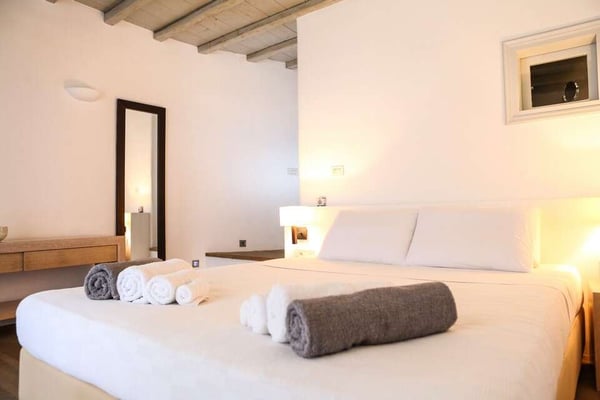 – To Mykonos Town: 3 km – To Mykonos Port: 2 km – To Mykonos Airport: 4 km – Closest beach: 600 meters (Agios Stefanos) – Closest shop: 1.5 km
