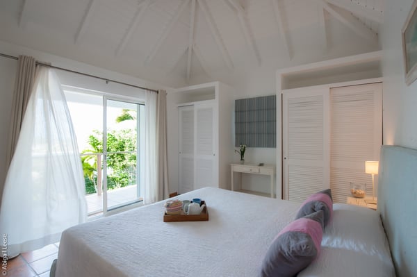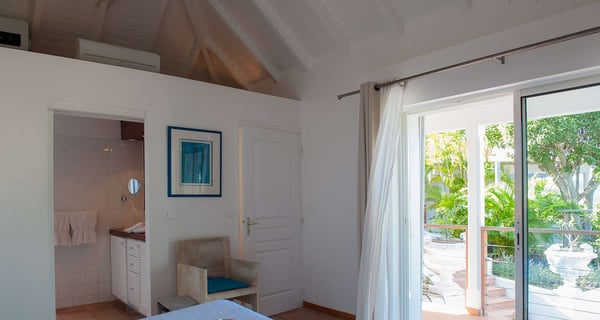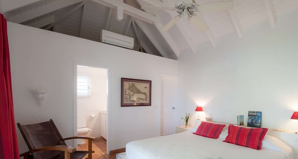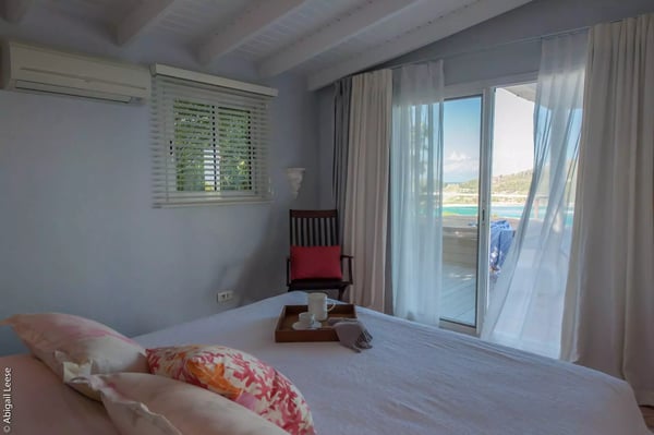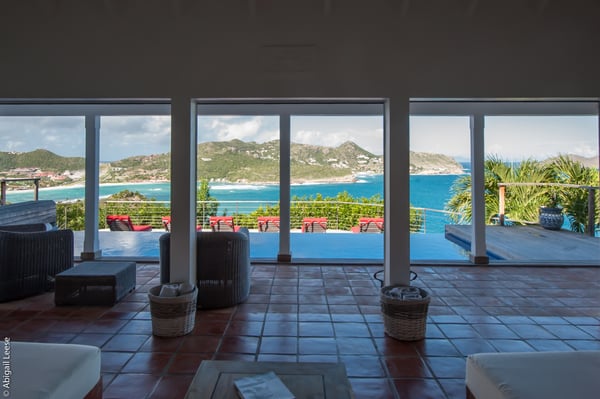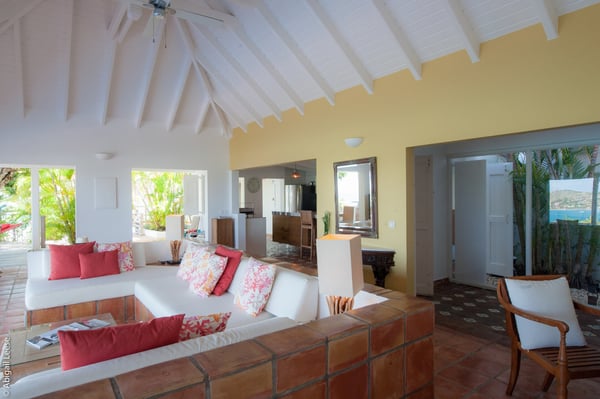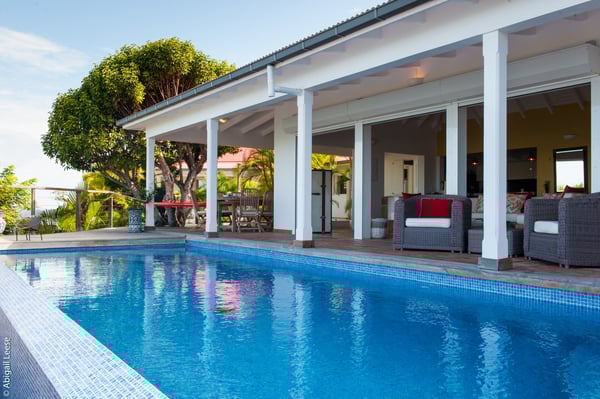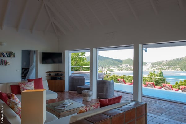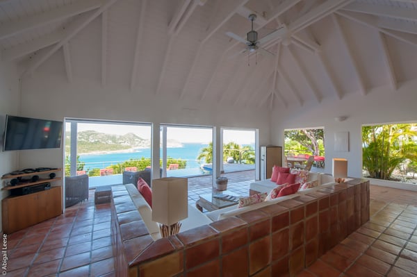With a wonderful panoramic view over St Jean Bay, Villa Ker Anna is a colour-filled dream both inside and out. The blue Atlantic Ocean stretches off toward Sint Maarten on the horizon, the green leaves of palm and guaiac sway in the breeze, and the interior of this delightful home is decorated in bright Caribbean hues. The main living area opens onto the covered terrace and sun-drenched pool and deck. Villa Ker Ana's three bedrooms all have private en-suite baths, and all enjoy the magnificent view. This lovely property is the perfect spot for families as well as groups of friends. Plentiful and comfortable seating makes it easy to find a place to relax, whether you are looking for a shady place to read or a chaise in the sun. The large deck and refreshing pool enjoy full sunlight for most of the day, and the western view provides wonderful sunsets year-round.