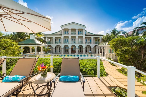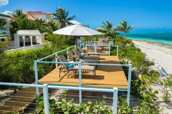 Tamarind Villa is a luxurious six-bedroom villa located directly on the beach at Smith’s Reef, western Grace Bay Beach. Each grand bedroom features an ensuite bathroom, and master suites have private balconies. Extensive indoor and outdoor dining options are perfect for large groups or special celebrations and lend themselves perfectly to private chefs and catering. The villa is within walking distance of restaurants in Turtle Cove and a short drive to central Grace Bay.