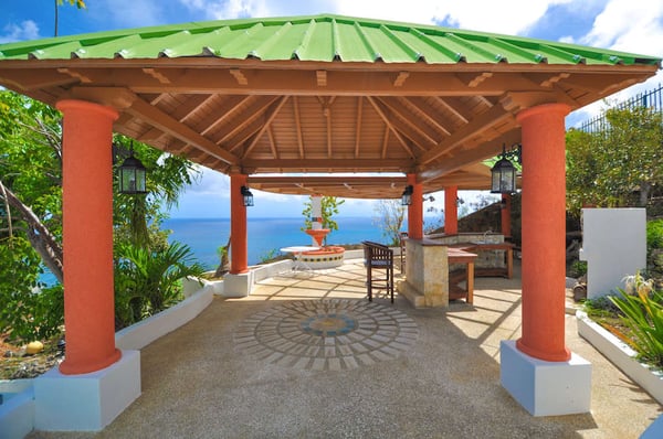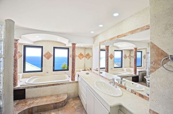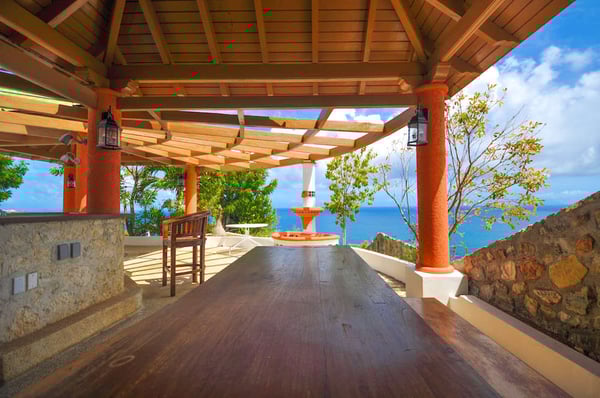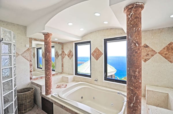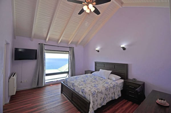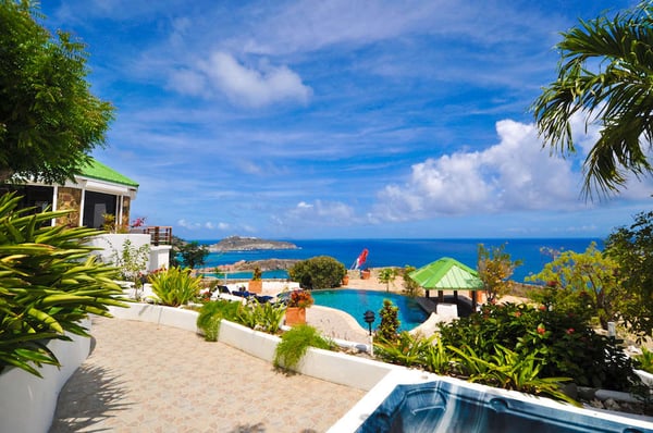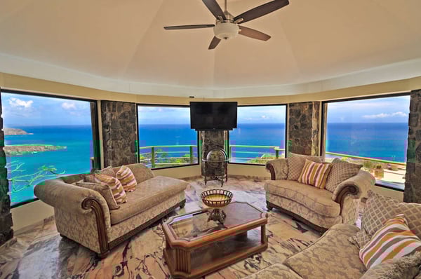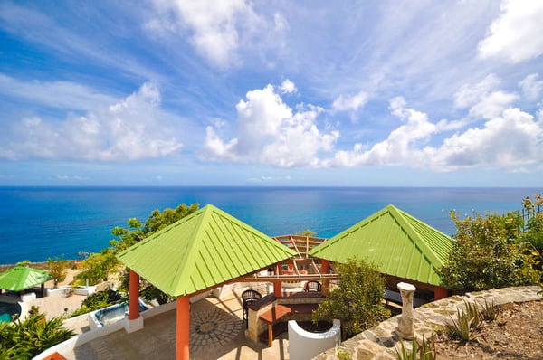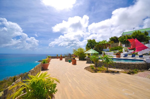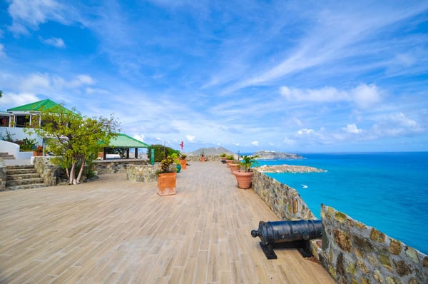 Situated at the top of Beethoven Drive, with one of the most impressive panoramic views, this three acre estate features massive 40 foot castle style rock walls with historic cannons. The recently renovated five bedroom villa boasts an over-sized pool deck area, which offers stunning Caribbean Sea views. On a clear day, you can see five neighbouring islands: St Barths, Nevis, St Kitts, Statia and Saba. This a unique opportunity to rent a statement estate like no other in the Caribbean. The property has no neighbours on either side, or above so it offers complete privacy.