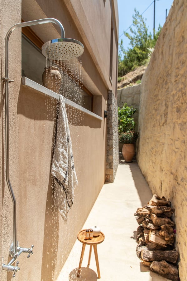 Villa Octo is a newly designed, eco-friendly, 195-square foot villa located near Heraklion, the capital of the island, on a bay overlooking the city. The villa is comprised of two levels and it can host up to six-people. On the first floor there is the Master Bedroom with a suite bathroom offering a spacious jacuzzi bathtub, ideal to relax and enjoy a beautiful view through the window with a glass of wine. Its main feature is the amazing view of the horizon and the sea from every corner of the bedroom which entices you to lose yourself with your partner. Two more bedrooms individually designed and furnished offer you relaxation and comfort. The main bathroom with shower services the extra bedrooms. All bedrooms are equipped with CocoMat natural full latex anatomic mattresses and bedding to offer the ultimate sleeping experience. On the ground floor, you will find the luxurious open space living room and kitchen area with hand-picked, stylish sofas and specially made furniture for you to enjoy the splendid views and share moments with your friends or family. The ideal space for private dinners or drinks with your loved one. Free wireless Internet is offered throughout the premises along with a tablet, a music set, a DVD player, and satellite TVs to service all your needs. The kitchen is fully equipped to allow you to prepare anything you wish for you or your company. The external of the villa consists of a beautiful garden with stone walls, open-air kitchen, a large barbecue area with a dining area, and an external toilet and shower. The unique element though is the beautiful private pool which offers you hydro massage (whirlpool) and foot air massage to complete the feeling of seclusion and luxury. The private hammam will complete the overwhelming experience. The external area is your unique space to pamper your body and your soul and enjoy the sunny and warm climate of the island days and nights. There is also a private, secure parking area for the guests of the villa with a remote control entrance gate. LICENCE: EL 1039K91003104501