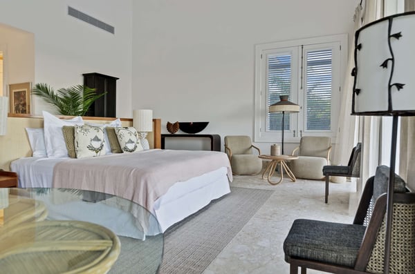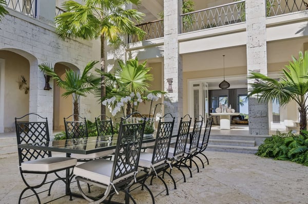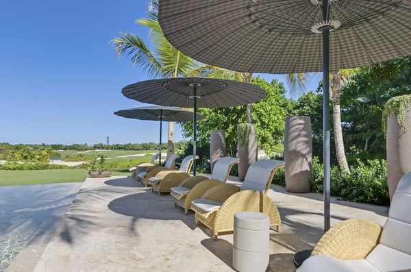 Guests staying within Puntacana Resort & Club will have access to all resort amenities and facilities. Resort amenities and facilities include two golf courses ($), two beach clubs ($), Six Senses Spa ($), restaurants ($), bars ($), and tennis centre ($). This contemporary villa is far from your standard Punta Cana vacation home - in fact, it is truly one-of-a-kind. Indoors and out, you'll be surrounded by luxurious furnishings and panoramic views of the Punta Cana Resort's golf courses. Interior rooms include furniture by acclaimed designers such as B&B Italia, Roche Bobois, and Van Rossum. Highlights like the Chef's kitchen and the private, palm tree-lined pool make this property supremely special. The villa comfortably sleeps up to fourteen guests in six spacious bedrooms. After an exhilarating day at the beach (or a lengthy golf game), there's nothing better than drifting off to sweet Caribbean dreams on our plush mattresses. Every bedroom features tall ceilings, cable TV, a safe-deposit box, custom closets, premium linens, and eclectic decor from around the world. All bedrooms also include en suite bathrooms, which incorporate beautiful stone work (limestone and coralstone) and modern fixtures like deep-soaking bathtubs. One bedroom is designed specifically for children, and it is decorated with a whimsical color scheme and kid-friendly furnishings. With the exception of the children's room, all of the other bedrooms include private balconies with rolling golf course views - perfect for admiring the sunrise or sunset. For your convenience and comfort, we provide everything you need to pamper yourself: sumptuous towels, crisp linens, and toiletries. Should you need to do laundry, the villa features a well-appointed laundry room so there's no need to send anything out. The villa's living spaces are just as stylish and airy as the bedrooms. For intimate family gatherings or swanky soirees, the indoor living rooms are perfect for relaxing or entertaining. Between sharing stories with loved ones and admiring the natural beauty around you, you'll find yourself admiring the Heerenhuis tables and Tissus Bruder curtains and rugs. After all, you didn't just come to Punta Cana to sleep - so our spaces are designed to invite conversation. The centerpieces of the room are the grand, patterned sofas and carefully chosen artwork, and the oversize windows can be opened to let in the tropical breezes. On a rare rainy day, the huge cable TV makes relaxing easy. Culinary traditions are part of the Caribbean experience, and this villa's gourmet kitchen has everything needed to produce Michelin star-worthy meals. Whether you choose to cook yourself or arrange private Chef services, the bright kitchen is a lovely place to eat a quick breakfast or snack on appetizers. Top-of-the-line appliances include a gas range, two professional-grade refrigerators, an espresso machine, and wine storage. Dining is always in style thanks to the elegant indoor dining table with seats for 14 guests. With a statement chandelier above, any meal will become a celebration. Or, if dining alfresco sounds intriguing, the outdoor dining table is also a fabulous choice. As the sun sets, you can close the shady umbrellas as the evening sky turns into a pastel masterpiece. But the interior is only part of Villa Alta Gracia; the outdoor spaces make it truly remarkable. Take a refreshing swim in the private pool or soak up the rays on a chaise lounge chair (or under a palapa) on the pool deck. The outdoor kitchen features a barbecue grill and a wet bar, so poolside lunches are always recommended, especially for the kids, who might spend the entire day in the water. Even though you might only spend a few days at Villa Alta Gracia, the architecture and interior design of this magnificent property will stay with you forever. It is one of the most unique and inspired homes in Punta Cana, if not the world, and we hope to welcome you to this stunning place soon.