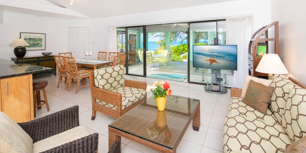 Fingertip sits directly on the waterfront at the end of a sandy point in Cayman Kai along the island's north coast. Walkable to the restaurants and waters ports at Rum Point Beach and The Kaibo, Fingertip is an excellent value, putting guests at the epicentre of the best Cayman Kai has to offer. This single-story, extremely private villa is an ideal choice for a honeymoon, anniversary, or a small family vacation. The property ends in a palm-shaded, white sandy beach with lounge chairs and a hammock under the palms. The shallow clear waters offer barefoot swimming, however, we advise guests to wear pool shoes for foot protection as a precaution. When combined with its comfortable interiors and exceptional privacy, Fingertip promises to be an island getaway you will never forget. Beach Notes The entire island is only 22 miles wide from west to east, so you are never too far from anywhere on Grand Cayman. The homes on the sound in Cayman Kai offer the best beaches as they don’t have as much marine and plant life living in the shallows. The beaches are typically soft white sand. The homes facing west offer barefoot swimming and shallow calm water. The sunsets are also wonderful, but the big draw to this area is the proximity to the Rum Point Club, a public beach club that offers a fantastic barefoot beach, many watersports, a restaurant bar and grill, a gift shop, and pick-up beach volleyball games. Lastly, about 20 minutes east are two large resorts (Morritt's and The Reef) that offer manicured beaches as well as restaurants, a modern grocery store, liquor store, gift shops, a Subway sandwich shop, and a cafe/pastry shop. These two resorts also offer scuba, snorkel trips, jet skis, windsurfers, kiteboarding, oceanfront pools and bar service. General Grand Cayman Beach Notes All beaches in Grand Cayman are technically “public” since the Queen owns up to the high watermark and the shoreline quality behind your property may vary seasonally. Be advised that the beach or water entry behind your property may vary slightly from the images on our website because of the weather. The next-door beach is also always available for your use. Ocean Debris and Sargassum Seaweed Beaches in Grand Cayman may also experience floating ocean debris and sargassum weed seasonally. Sargassum is a generally harmless floating seaweed that has increased in frequency in recent years. Although sargassum is an unsightly nuisance, it is largely seasonal in summer. The owners do make efforts to remove heavy sargassum and will have the beach raked before your arrival. We try our best to work around mother nature.