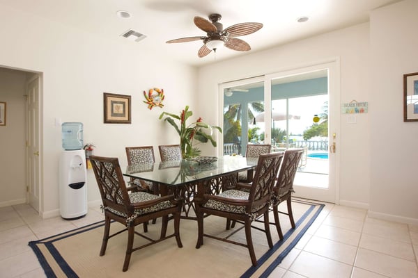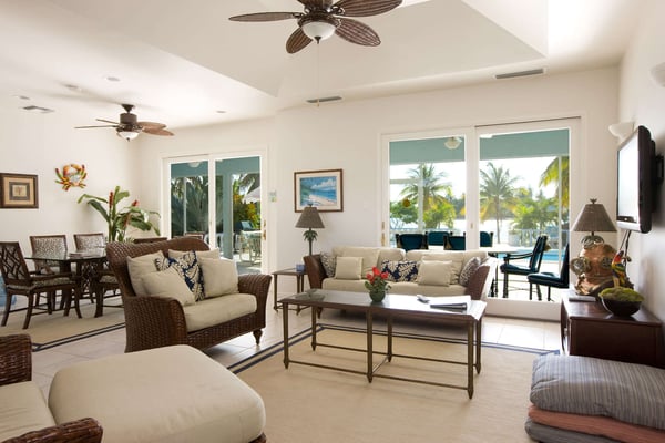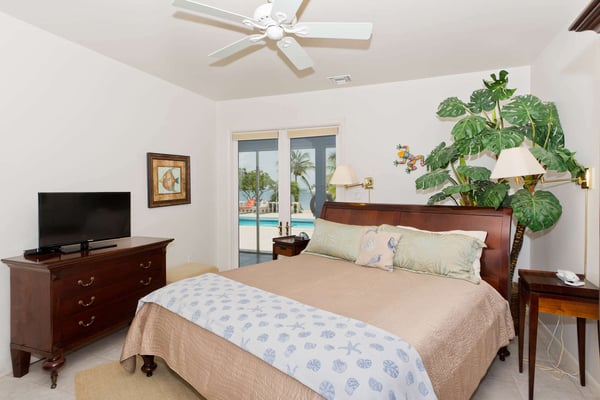 Welcome to Kailypso, a 3-bedroom beachfront villa in Cayman Kai located on Bio Bay. Measuring over 2,800 square feet with spectacular outdoor spaces, cozy interiors, and a secluded beach, this popular villa is the perfect destination for family vacations and group getaways. Nestled among tall palm trees and lush tropical plants, Kailypso’s waterfront pool and patio create a tropical oasis. Plenty of loungers dot the pool deck for sunbathers to kick back and work on their tans. After hours under the sun, cool off with a refreshing dip in the pool or seek shade on the screened-in porch. A concrete pathway leads you down from the pool deck onto a soft sandy beach with a private boat dock. Beach lovers will love this slice of paradise. Two single kayaks are provided during your stay. During the day, launch from the dock and explore the calm surrounding waters of Cayman Kai. Then, on moonless nights, take the kayaks out and watch the water glow with light as you paddle. Bio Bay is one of the few bioluminescent bays in the world making it an unforgettable experience. Kailypso’s three bedrooms include a primary suite with an ensuite bathroom and two additional bedrooms with a shared bathroom between them. Beach Notes The entire island is only 22 miles wide from west to east, so you are never too far from anywhere on Grand Cayman. The cove-front homes in Cayman Kai offer calm serene water for docking a rental boat, private charter pick-up if the villa has a dock or just safe shallow water along the edge swimming for little children. Adults won’t swim in the cove—Rum Point is too nice by comparison—the water is shallow and has a softer bottom and there is no reef here for fish life...but we do see the occasional turtle, eagle ray, or tarpon swim by in the shallows! Another benefit is that we rarely get any seaweed in the cove, so the beaches stay cleaner than the oceanfront beaches. The beaches are flat white barefoot sand. The big draw to this area is the proximity to the Rum Point Club, a public beach club within a short walk that offers a fantastic barefoot beach, many water sports, a restaurant and bar, gift shop and pick-up beach volleyball games. Also, nearby is the Kaibo, a beachfront restaurant, bar, and marina. Lastly, about 20 minutes east there are two large resorts--Morritt's and The Reef--that offer manicured beaches, plus restaurants, a grocery store, liquor store, gift shops, a Subway sandwich shop, the Italian Kitchen Restaurant. These two resorts also offer scuba, snorkel trips, jet ski rentals, windsurfing, kiteboarding, oceanfront pools, and bar service. General Grand Cayman Beach Notes All beaches in Grand Cayman are technically “public” since the Queen owns up to the high watermark and the shoreline quality behind your property may vary seasonally. Be advised that the beach or water entry behind your property may vary slightly from the images on our website because of the weather. The next-door beach is also always available for your use. Ocean Debris and Sargassum Seaweed Beaches in Grand Cayman may also experience floating ocean debris and sargassum weed seasonally. This location is VERY rarely affected. We try our best to work around mother nature.