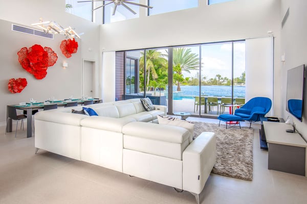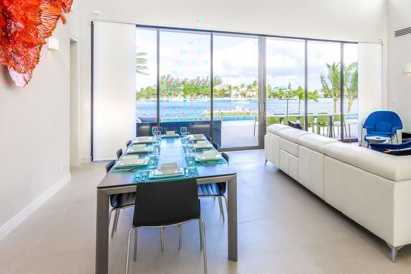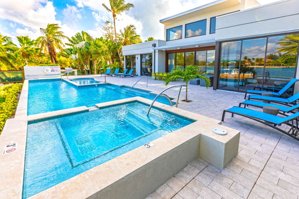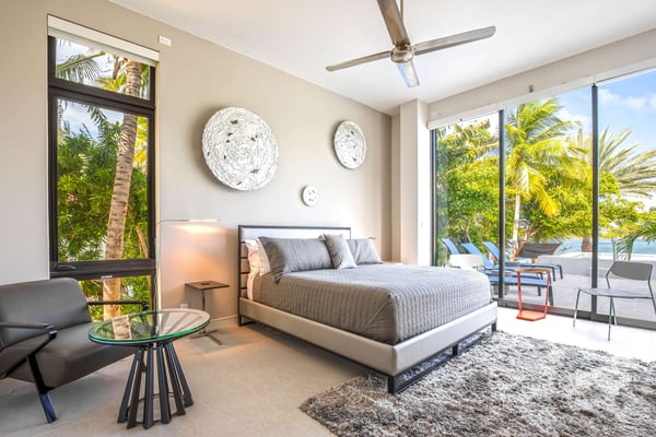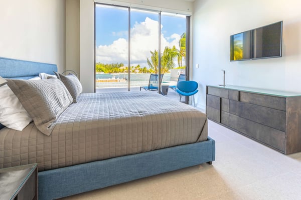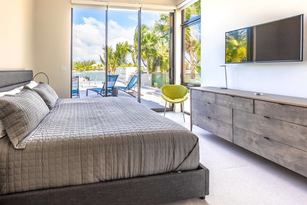 Welcome to White Dahlia. This multi-windowed, open-concept floor-plan offers up to 10 guests an opportunity to spend their vacation free of clutter with smart home technology and luxurious amenities. Soaring ceilings, walls of glass and a quiet cove with a private dock creates a serene enclave for your family and friends to enjoy. With a white sandy beach diagonally across the street, this brand-new villa provides a welcome escape after a day in the sun at Rum Point, or out on the water. Beach Notes The entire island is only 22 miles wide from west to east, so you are never too far from anywhere on Grand Cayman. The cove-front homes in Cayman Kai offer serene waters for docking a rental boat, charter boat pick-up and drop-off, plus kayaking or paddleboarding with no waves. The cove is locally referred to as Bioluminescent Bay, one of the few throughout the world and one of the island's most popular nighttime tourist attractions. On a moonless night, guests can launch kayaks off the villa's dock for a bio-tour of the glowing phytoplankton—an experience not to be missed! You get the best of both worlds at this home: a backyard facing the cove with private pool and boat dock, plus barefoot white-sand swimming across the street using the public right-of-way beach access. All beaches in Grand Cayman are technically "public", in that you can swim anywhere along the coast, even behind the Ritz-Carlton! The big draw to this area is the proximity to the Rum Point Club, a public beach club that offers a fantastic barefoot beach, water sports, restaurants, a gift shop, and pick-up beach volleyball games. Also, nearby is the Kaibo Yacht Club featuring a fine dining restaurant, a casual beach bar and grill, and a marina. Ferry service to Camana Bay departs from the Kaibo Marina, perfect for day trips to Seven Mile Beach! Overall, Cayman Kai is a fabulous neighborhood dotted with million-dollar oceanfront villas and sweeping tropical views. General Grand Cayman Beach Notes All beaches in Grand Cayman are technically “public” since the King owns up to the high watermark. The shoreline quality behind your property may vary seasonally. Be advised, the beach or water entry behind your property may vary slightly from the images on our website due to weather.