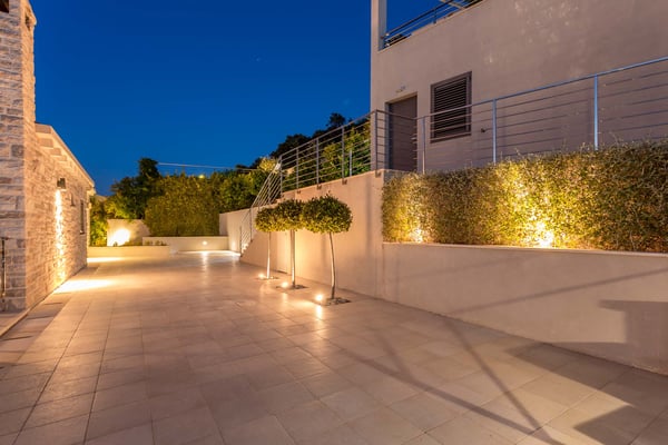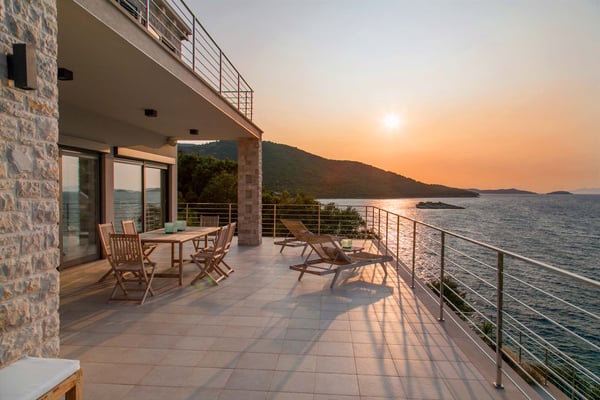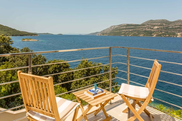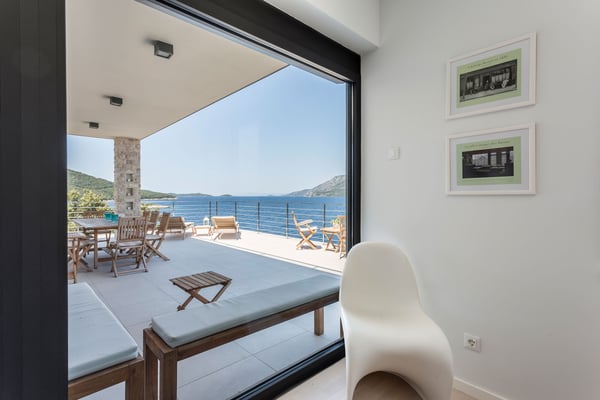 Luxury Villa Marinero is an exceptional seaside villa, built on two independent and one connected floor, located on the sunny island Korcula. This is a beautiful island of unspoiled nature and a clear blue sea with many magical bays and islands in its archipelago. It has the Mediterranean Sea as a backdrop with its majestic views and the soothing sound of its waves. The villa’s contemporary decor has been inspired by the sea and the vegetation surrounding the villa. The colour scheme of blues, white, and orange/gold as natural colours, reminiscent of the beach; the nautical theme adopted throughout the villa complements it very appropriately. Luxury Villa Marinero is an ideal location found in the embrace of the picturesque and peaceful village of Zrnovska Banja. The villa is just a few steps from the sea, where it has a private area of the beach with a sun deck and mooring dock. From the center of Zrovska Banja, it is 2km; while the world-famous city of Marco Polo, the town of Korcula, is 5 km away. Zrnovska Banja is a favourite destination of windsurfers who benefit from the favourable winds in the channel between Korčula and Peljesac. The island of Korcula is known as an island of natural beauty, rich marine life, and, of course, beautiful beaches All bays and islands of this archipelago are perfect for exploring and swimming. The special beauty of this island is the superb cuisine that it provides, which is rich in fresh seafood, excellent wines, and high-quality extra virgin olive oil. Luxury Villa Marinero is located on a property with a total area of 850 m² and the villa itself extends over three floors and one independent unit with a total area of 360 m². It also has a heated infinity swimming pool (24 m²), outdoor fireplace and private beach plateau with a sundeck. Luxury Villa Marinero has a fully equipped kitchen, dining area, living room, 4 bedrooms (one of which is a small separate apartment which can be used for staff which is equipped with a sofa bed, a private bathroom and a kitchen), 5 bathrooms, 1 toilet, gym and is suitable accommodation for 8 persons in 4 bedrooms. As you enter the gorgeous property, a beautifully designed villa welcomes you. Here, you will experience the true Mediterranean feeling of living. Surrounded by typical beautiful Dalmatian greenery, you will feel as though you are in an oasis of peace and tranquillity. Many wonderful and memorable moments on the large terrace furnished with outdoor seating for relaxing, can be spent in peace with your loved ones. On the ground level of Villa Marinero, there is a terrace with a heated infinity swimming pool which makes the villa an ideal choice for vacationing even outside the hot summer months. Next to the pool is a sun deck with lounge chairs and an outdoor shower. If you are, however, a fan of swimming in the open water, there are private stairs leading all the way to the sea only 10 m away, just below the villa, so you can enjoy a refreshing swim down on the rocky beach or sunbathe on the concrete sun deck. Outdoor stairs leading from the ground level take you to the ground floor of the villa where you will find a separate air-conditioned apartment featuring a kitchenette, a living area with a sofa which can be used as an extra bed for children, a queen-size bed and en-suite bathroom with a shower. Large glass sliding doors connect the interior with covered terraces with furniture and magnificent sea views. Taking the outdoor stairs leading up to the first floor of the villa will bring you to the main entrance of Villa Marinero. On this level, there is a spacious living room with a sofa, a dining area with a dining table and chairs, a fully equipped modern kitchen, and a bathroom with laundry. Villa Marinero stands out with its breathtaking large glass sliding doors that create a fine line between the interior and the terrace and provide a carefree and charming view of the sea and onward view to the hills of the Peljesac peninsula. On this terrace, there is also a covered outdoor dining area with a table and chairs and a stone grill. The terrace area is ideal for summer entertainment, as you can enjoy the best Dalmatian specialties and create unforgettable moments with your loved ones. The remaining 3 bedrooms are located on the highest floor of the villa. The primary bedroom features a king-size bed, work desk and TV; the guest room has a queen-size bed and a TV while the children's room features two single beds, a TV and a gallery intended for entertainment and games. All bedrooms have their own en-suite bathroom. For those who like to be more active – there is a gym on the property as well situated on the highest level of the property, where there is also an apartment for staff. Perfect for sea lovers! Villa Marinero is a seaside retreat infused with love for the sea and contemporary design. Using traditional hues of white and navy blue as the primary palette, vibrant splashes of red and orange create a sophisticated, summer-inspired space. Town Korcula, with its rich historical, architectural and artistic treasures is only 5km away. Here you can also find a plethora of shops, restaurants, and emergency services.