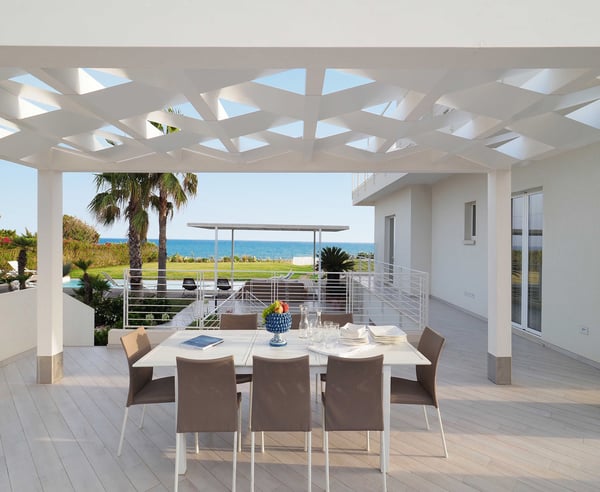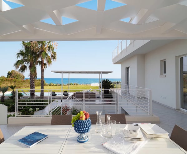 Blumarine is a luxurious villa with a private swimming pool, perfectly positioned along the seafront in Marina di Modica, a charming seaside resort on Sicily’s southern coast. This contemporary retreat features expansive panoramic terraces and a dedicated wellness area complete with a sauna and Jacuzzi. Spanning three floors, Blumarine offers stylish and inviting interiors. The ground floor includes a cozy sitting room, a fully equipped kitchen, and two bedrooms, each with en-suite showers. On the first floor, you'll find a spacious living area, a second modern kitchen, two additional bedrooms with en-suite showers, and a separate bathroom. The second floor is dedicated to the master suite, which boasts an en-suite shower and access to a panoramic terrace. Blumarine is fully equipped with wireless internet access, satellite TV, a washing machine, dishwasher, and a safe, with air conditioning in every room. Ideally located, Blumarine serves as the perfect base to explore Sicily’s baroque gems, including Modica, Scicli, Ragusa Ibla, and Noto. It's also within easy reach of Marina di Ragusa’s vibrant nightlife and the iconic filming locations of the Inspector Montalbano series, such as Sampieri, Punta Secca, and the historic Donnafugata Castle. CIN: IT088006C22MCKZT76