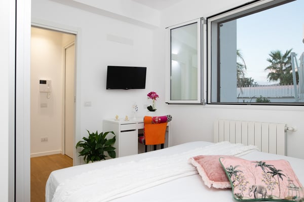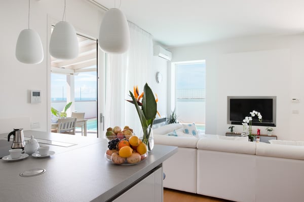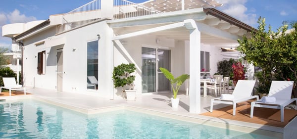 Retreat to the dazzling Agrigento coastline, an incredible cultural destination where you can spend time with loved ones while enjoying the peaceful area as well as marveling at the Valley of the Temples and its archeological sites. Explore the blue waters, the sandy beaches, and the Stair of Turks: a white marl rock that protrudes prominently into the sea, also part of the UNESCO Heritage list since 2007. Here you can find Deolinda, a charming semi-attached villa located in a gated community. With an appealing contemporary design and décor, and large wall-to-ceiling windows that flood the interiors with natural light, this is a villa to be enjoyed every hour of the day.