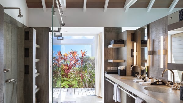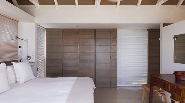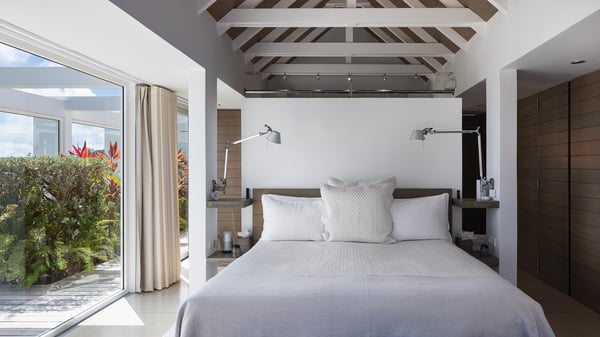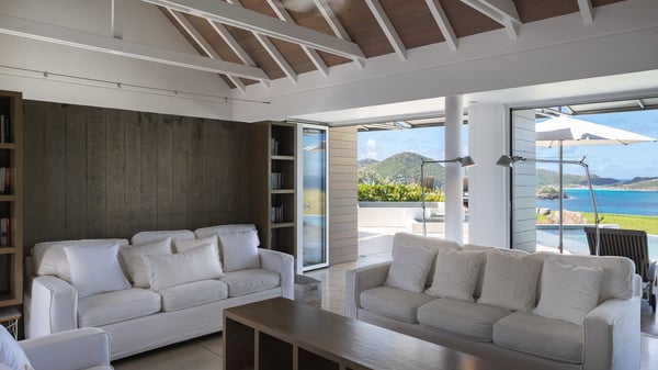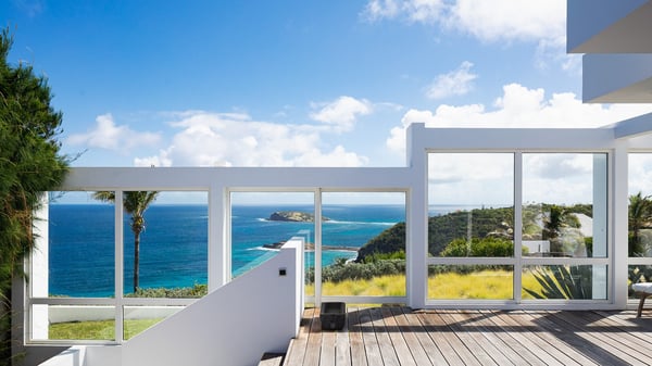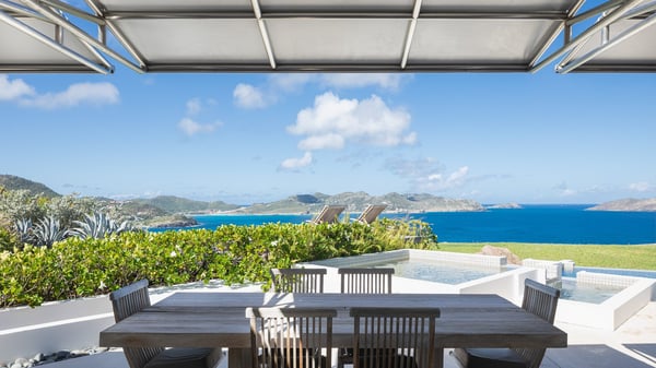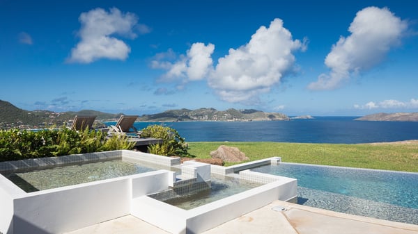 Villa Sea Weed is a two-bedroom property ideally located in Pointe-Milou in front of the ocean and the glowing sunsets. Spacious and very private, this vacation rental home offers bright spaces in a luxurious scenery. With a lovely swimming pool and two bedrooms, villa Sea Weed is the perfect place for a four-people dream stay in the Caribbean. Villa Sea Weed is a contemporary and luxury property in St-Barths with stunning ocean views. Its elegant living room features bay windows through which you’ll admire the deep-blue ocean. There is a comfortable lounge with white sofas and armchairs for pleasant relaxing moments in the gentle Caribbean, close to the indoor dining room for ten guests. The kitchen is well equipped and has a breakfast bar located at the back to talk over a coffee, as the trade winds gently blow through the luxuriously furnished living space in St-Barths’ bright light. At the front, the terrace opens onto the amazing view over the ocean, the neighbouring islets, and the evening glorious sunsets. Under the covered area, the outdoor dining room welcomes guests to dine al fresco, as well as the second outdoor dining table located close to the barbecue. A few steps ahead on the wooden deck, you'll enjoy the beautiful swimming pool (which is heated in winter) featuring small, shallow pools above the main one. There are lounge chairs perfect to relax in front of the ocean view. In addition, you’ll love discovering the small wooden path which leads to a promontory with deckchairs in front of the breathtaking ocean view. The property's garden provides a lovely vegetal breath to the idyllic scenery, in an exclusive and very private atmosphere. The holiday rental villa Sea Weed consists of two air-conditioned bedrooms with king-size beds and en-suite bathrooms. Both bedrooms are bright and open onto private, glass-protected terraces with breathtaking ocean views and furnished with armchairs. The view over the villa's tropical garden is most relaxing and peaceful in front of the amazingly beautiful ocean. In the outstanding beauty of St-Barths in front of the glowing sunsets, villa Sea Weed is the perfect place for an unforgettable Caribbean stay for four.