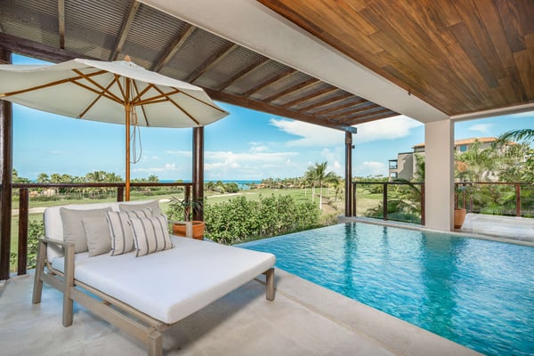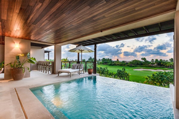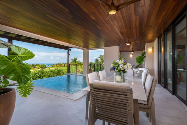 The Premier Golf Membership grants access to Pacifico Golf Course ($), Bahia Golf Course ($), the Tennis Centre ($), the Fitness Center ($), El Surf Club based on min. consumption fee ($), St.Regis Beach Club based on availability and min. consumption fee ($), Pacifico Beach Club, Sufí Ocean Club and Kupuri Beach Club. Contact one of our Villa Specialists for more information. Condo Ocaso Lindo is a professionally decorated ground-level condo that is part of the premier Las Marieta's condominium complex located behind the gates of the world-famous Punta Mita resort. At Condo Ocaso Lindo you can enjoy the beautiful views of lush vegetation, the oceanfront 18th hole of the Jack Nicklaus Bahia Course, and a stunning 180-degree Pacific Ocean view. While relaxing on the large outdoor terrace, take a dip in the lovely infinity pool, watch the spectacular sunsets and whales play from the condo's own sunset bar or visit our community lap pool and exercise facility conveniently located just next door. You will also delight in the high-end furnishings, comfortable beds and linens, and Premium Membership it holds to the Punta Mita development, this allowing you access to all the private beach clubs: Pacifico, Kupuri, Sufi Ocean and El Surf Club, as well as the two Jack Nicklaus golf courses, tennis courts, and fitness center. Whether your vacation is full of adventure and activity or one of extreme relaxation, your included personal concierge will assist you in making it a reality at Condo Ocaso Lindo.