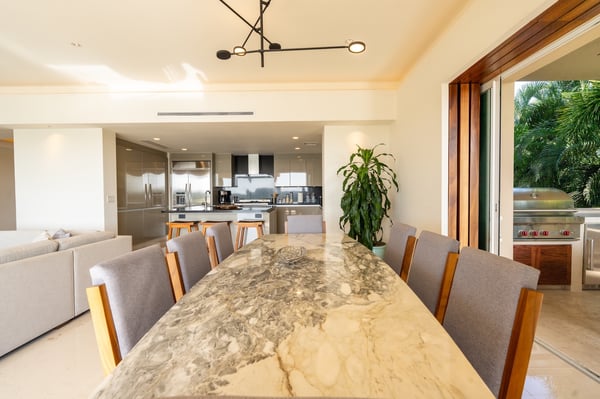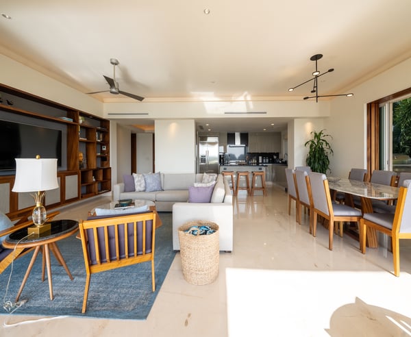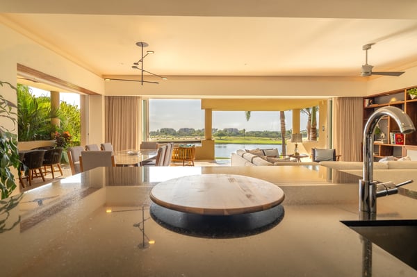 The Premier Golf Membership grants access to Pacifico Golf Course ($), Bahia Golf Course ($), the Tennis Centre ($), the Fitness Center ($), El Surf Club based on min. consumption fee ($), St.Regis Beach Club based on availability and min. consumption fee ($), Pacifico Beach Club, Sufí Ocean Club and Kupuri Beach Club ($). Contact one of our Villa Specialists for more information. The ideal family retreat with 3 bedrooms and a flex room perfect for kids. Designed for comfort and unforgettable moments in Punta Mita. Imagine your dream vacation at Condo Marquesa, located in El Encanto Flats, just steps away from the golf course, Sufi Ocean Club, and Sea Breeze Beach Club. This charming apartment, newly renovated and located on the second floor (accessible by elevator), welcomes you with exceptional amenities. With three spacious bedrooms, each with its own bathroom, it provides the space and privacy you seek to relax. The crown jewel is its large terrace that surrounds all areas, from the bedrooms to the living room and dining area, offering a seamless connection to the outdoors and spectacular views of the golf course and lake.