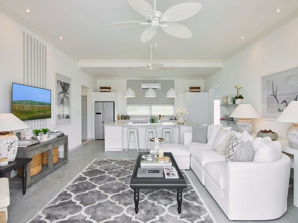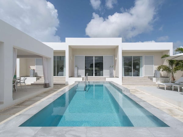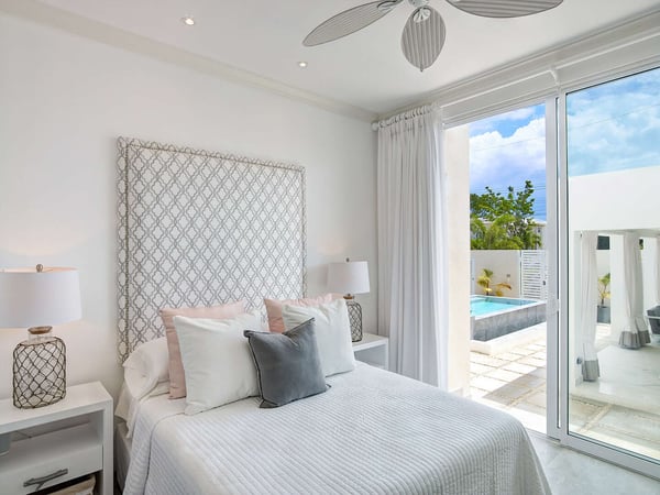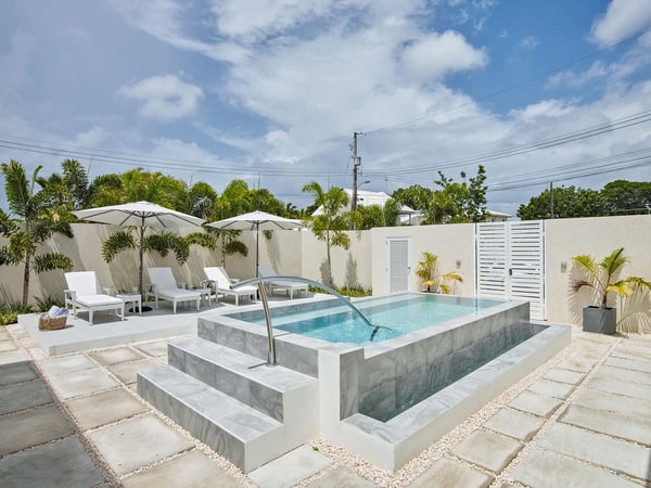 The South Cottage sits just a minute from Alleyne Bay and is a private tropical oasis with a sleek and stylish finish. This luxury vacation villa can be rented separately, combined with The North Cottage or both cottages can be rented together with the main Footprints residence. The infinity-edge pool sits in the middle of the courtyard amongst greenery and plush lounge furniture. A covered dining area is also a favourite place for guests to enjoy meals. A few steps from the courtyard takes you to the main living area which is decorated in a contemporary style. Lots of white is used throughout creating a relaxing effect. The kitchen is modern and cosy with a breakfast bar with seating and an island separating the living areas. There are three bedrooms in The South Cottage. The master has a king-sized bed with a working space, an ensuite bathroom and views of the courtyard and pool. Tufted headboards, neutral tones and fine finishes are a hallmark of the second and third bedroom which has a queen bed and en suite bathroom. The third bedroom has two twin beds and a view of the pool. The staff are professional and friendly without being intrusive. All of your needs are taken care of while you enjoy a breakfast mimosa at your Barbados holiday rental. Alleyne’s Bay is less than a minute’s walk and is the perfect place to watch the sunset with a bottle of wine. Juma’s Beach Bar is on the beachfront and sits next to Lone Star Restaurant, both restaurants offer great food choices depending on your preference for a casual or fine dining experience. A stay at the cottages at Footprints will leave you rejuvenated and maybe entice you to stay and work remotely under the Barbados 12-Month Work Stamp Visa.
