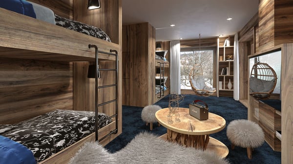 In Les Trois Vallees, nested in the forest, close to the track between Meribel center and La Chaudane, the Chalet Alycia, and its 265m2 of living surface on four levels, can accommodate up to 12 guests (eight adults and four children), games room and swimming pool. The chalet combines all modern amenities together with the ancient style of Savoyard chalets while offering luxury and comfort.